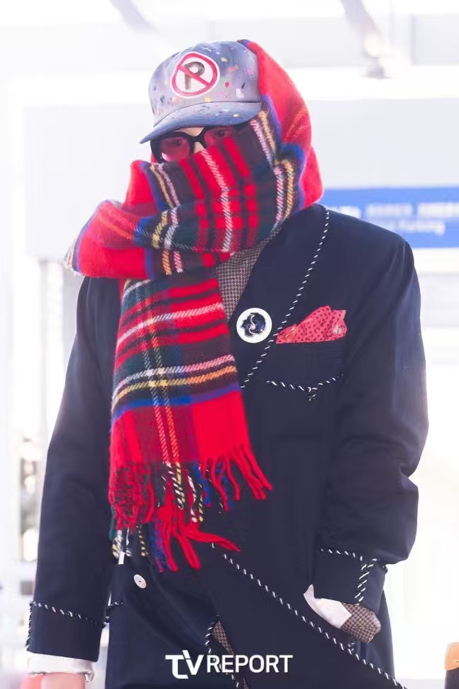 权志龙红格子围巾权志龙2026巴黎时装周权志龙今日出发巴黎时装周红格子围巾好时髦