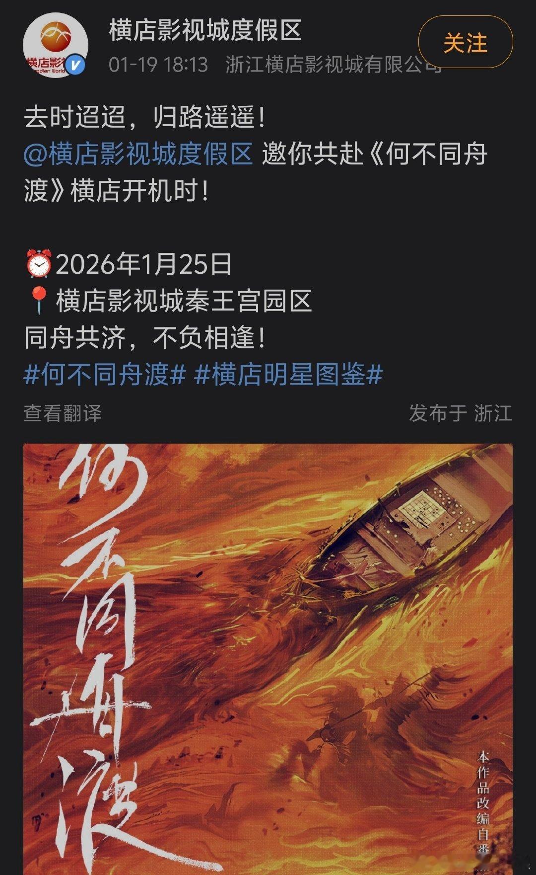 檀健次《何不同舟渡》官抖开通,1月25日横店开机,檀健次谢却山要来了