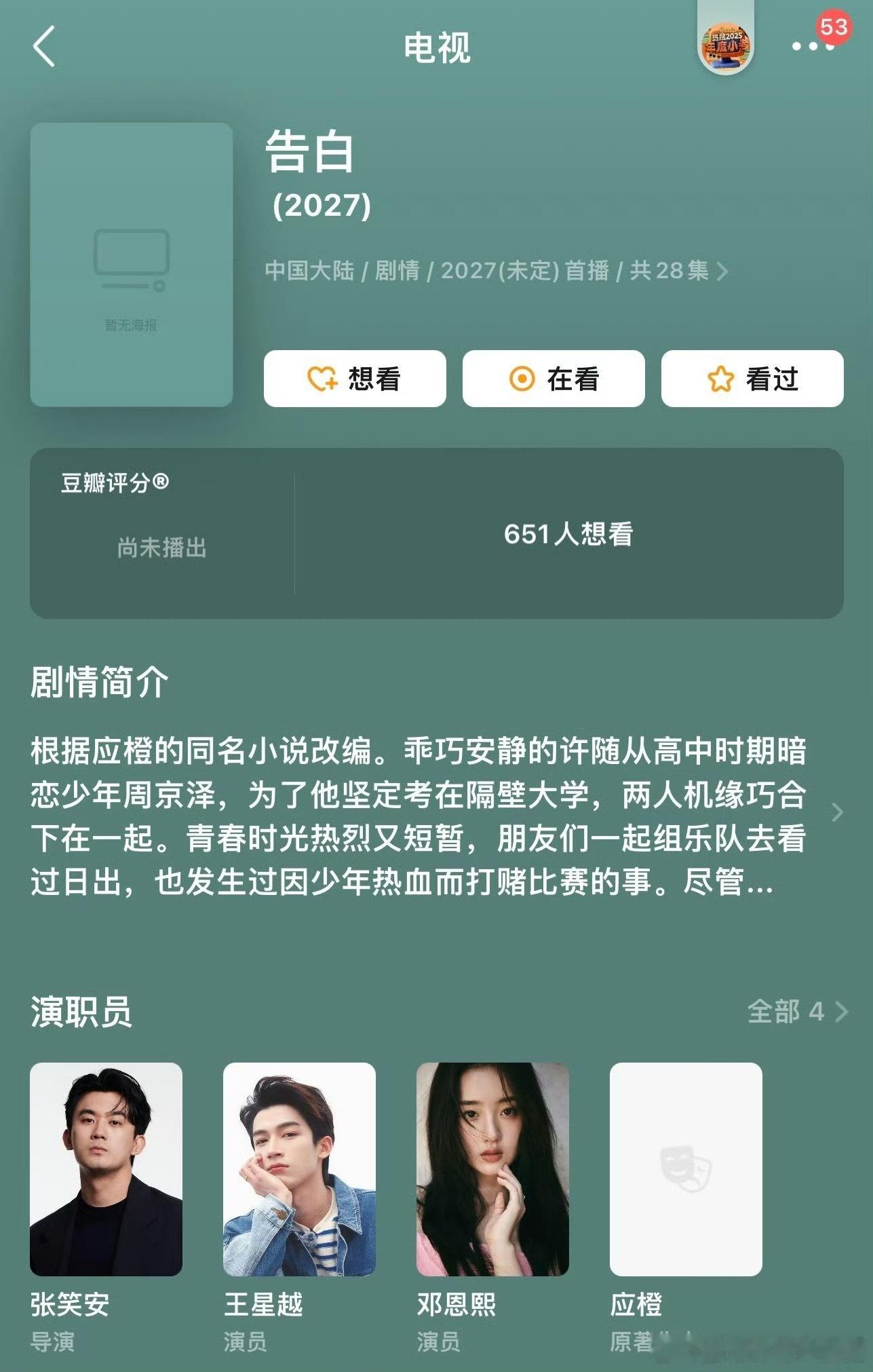 王星越、邓恩熙《告白》开通官方账号,燥候周京泽许随!!!!