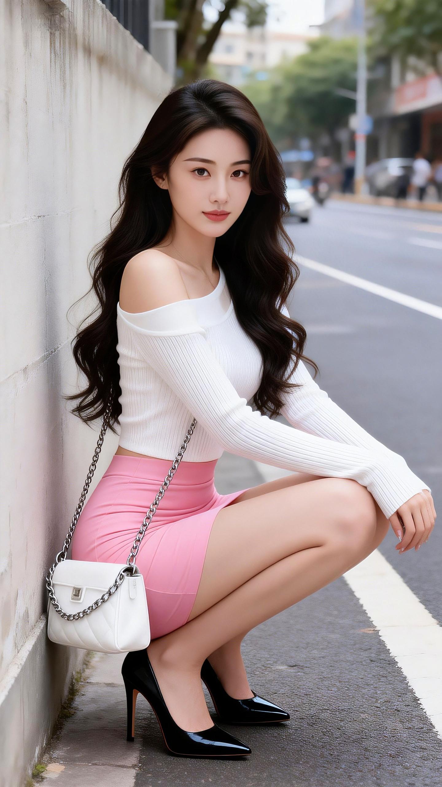 白色短款毛衣搭配毛绒短裙,优雅又俏皮,完美展现时尚感!