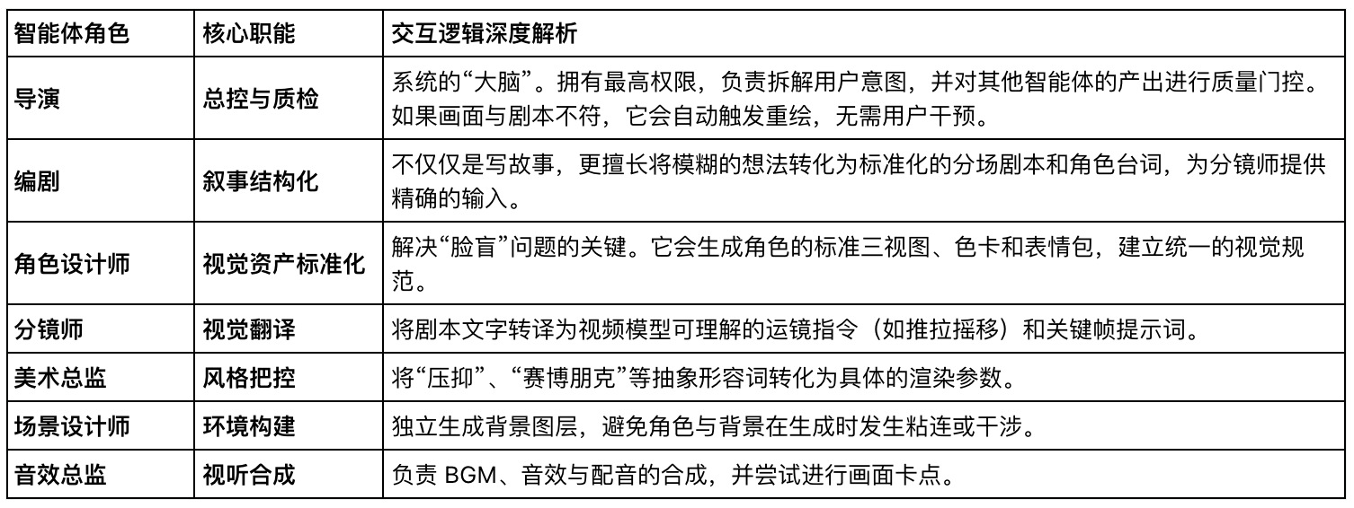 工作流:用户仅需输入一段200字的故事梗概。系统自动补全世界观、生成分场剧本、冻结主角资产、批量绘制分镜,并最终渲染全片。