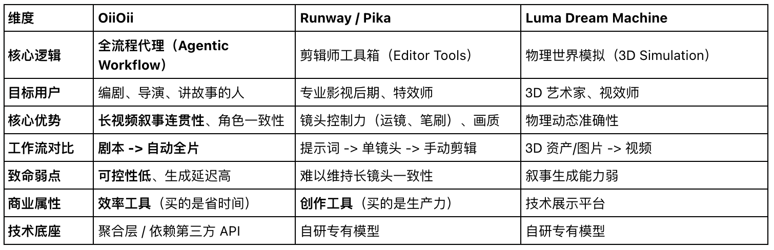 将OiiOii置于2025-2026年的AI视频生成市场坐标系中,其“差异化生存”的策略十分清晰。