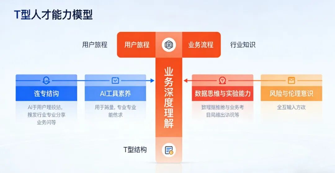 成为“AI赋能型产品经理”,意味着能力模型的升级。你可以把它想象成一个新T型结构。