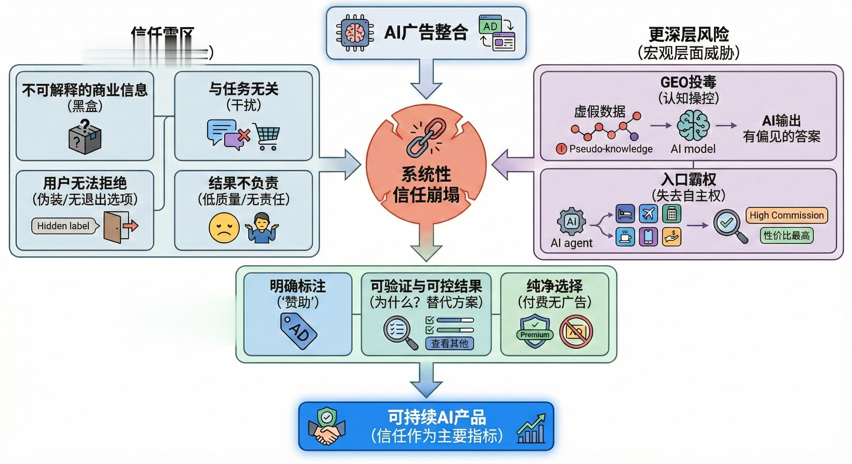 AI广告真正的风险,不是打扰用户体验那么简单。它触及的是一个更根本的东西:信任。一旦处理不好,引发的将是系统性的信任崩塌,这对产品来说是致命的