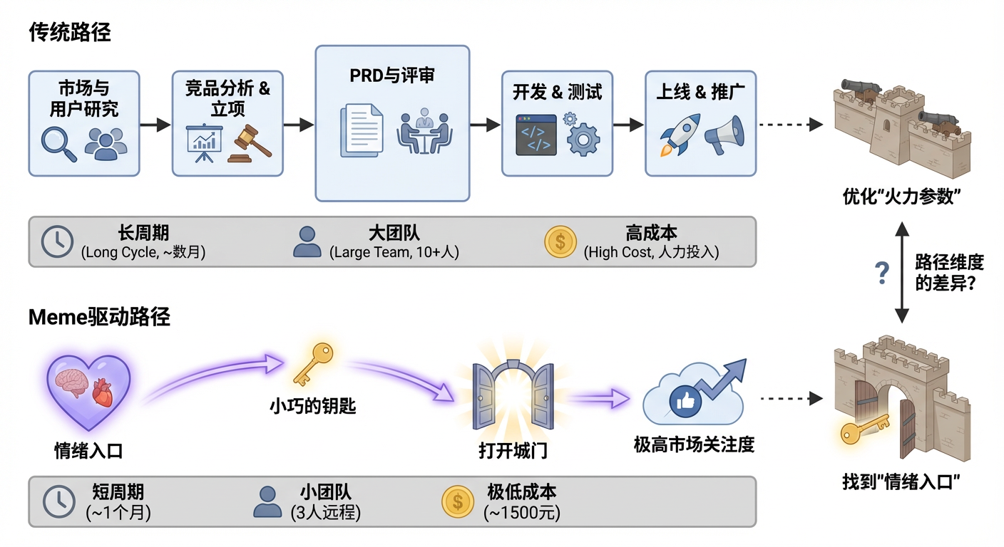 这个案例,很大程度上依赖于特定的时机和语境:社交平台对梗文化的包容度、城市独居话题逐渐被放大的阶段、用户情绪的集体共振、以及AI工具刚刚显著降低开发门槛的阶段性红利。缺少其中任何一环,结果都可能完全不同。它更像是一次“条件同时满足”的结果,而不是一套可以被简单复用的打法