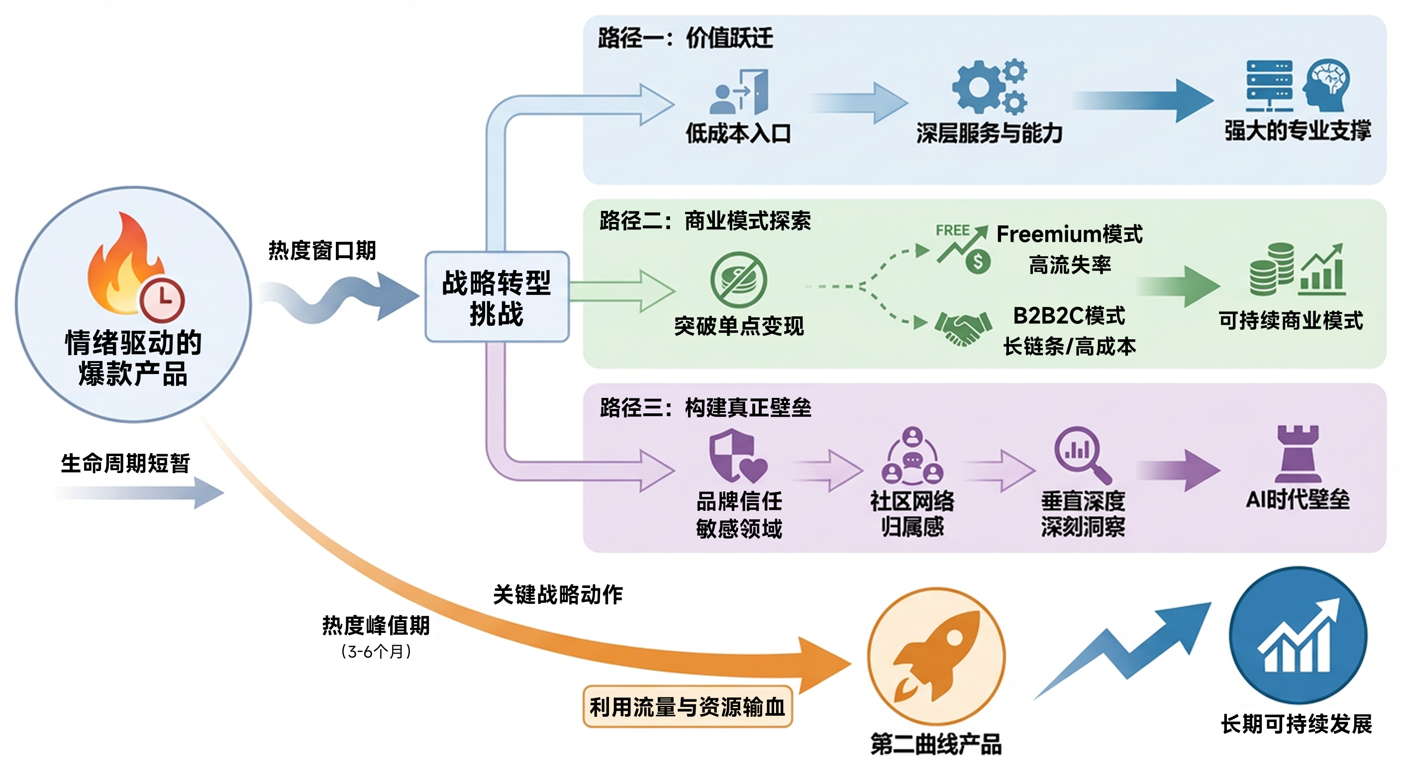 最后一点,也是对产品经理战略眼光的一个考验。必须清醒地认识到,任何一个基于“梗”的爆款,它的生命周期都是有限的。必须在它最火的时候,也就是情绪红利期,通常是爆火后的3到6个月内,就开始规划和投入资源去做产品的“第二曲线”