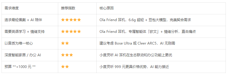 定位:最大亮点是6.6g无感佩戴+豆包大模型专属智能体的组合,把AI陪伴(英语陪练、情绪安慰)、语音点歌等场景化功能做到了极致,适合需要“耳机不仅是听歌工具,更是生活助手”的用户。