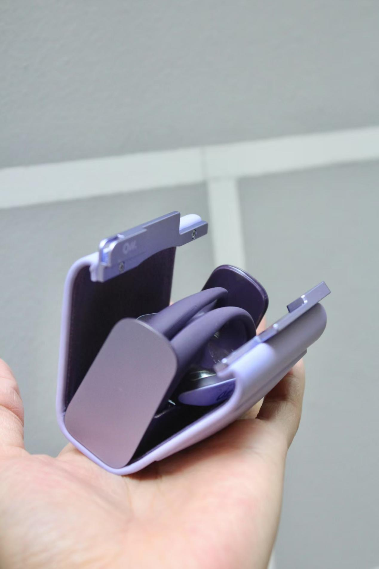 它的充电盒太戳我了——69mm×57.5mm×34.5mm的小巧尺寸,却是独特的“小钱包”样式,打破了普通耳机盒常见的圆润常规设计,一眼就很有辨识度。