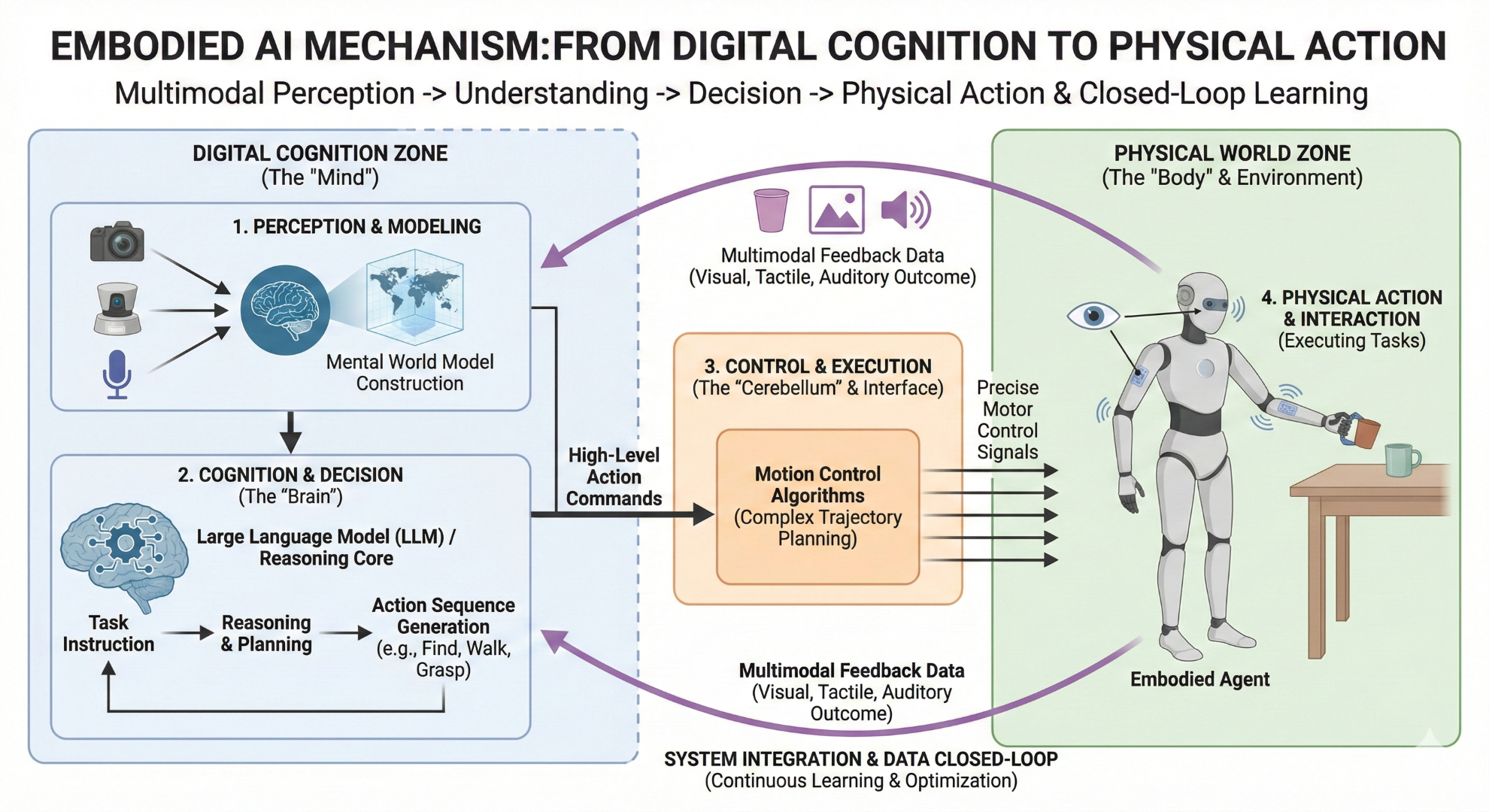 多模态要做的,就是让AI拥有这种跨越不同感官信息,形成统一认知的能力。它的终极目标,不是停留在“理解”层面,而是要跨越从“理解”到“执行”的鸿沟,让AI能够直接对物理世界进行交互和操作。