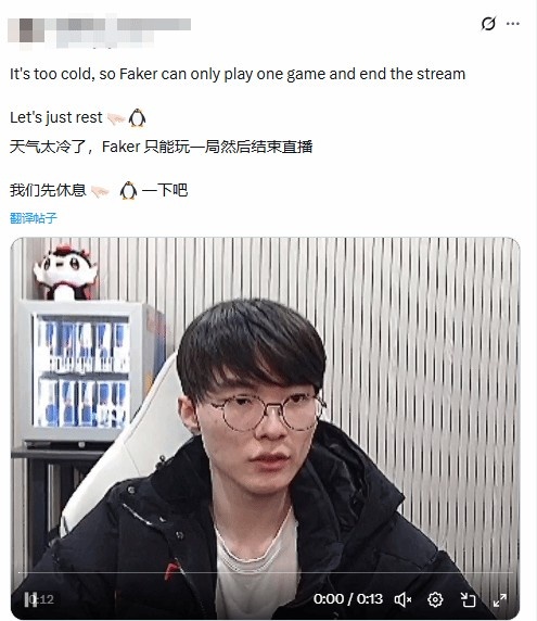 Faker在直播中也提到身体不适,明确表示“寒潮来袭,估计没法在直播间玩游戏了”、“哇,我的脚好冷啊……?是暖气坏了吗?”