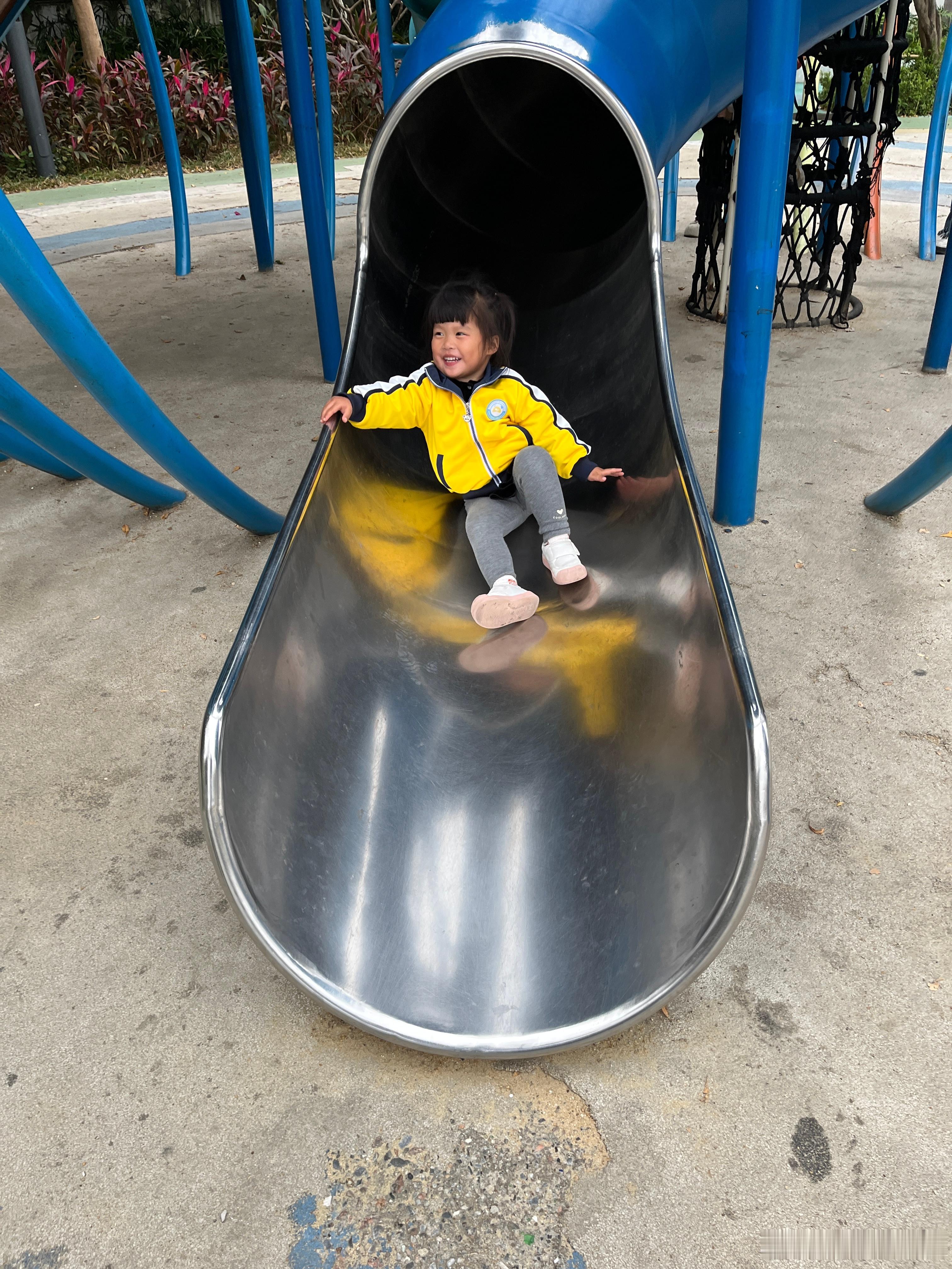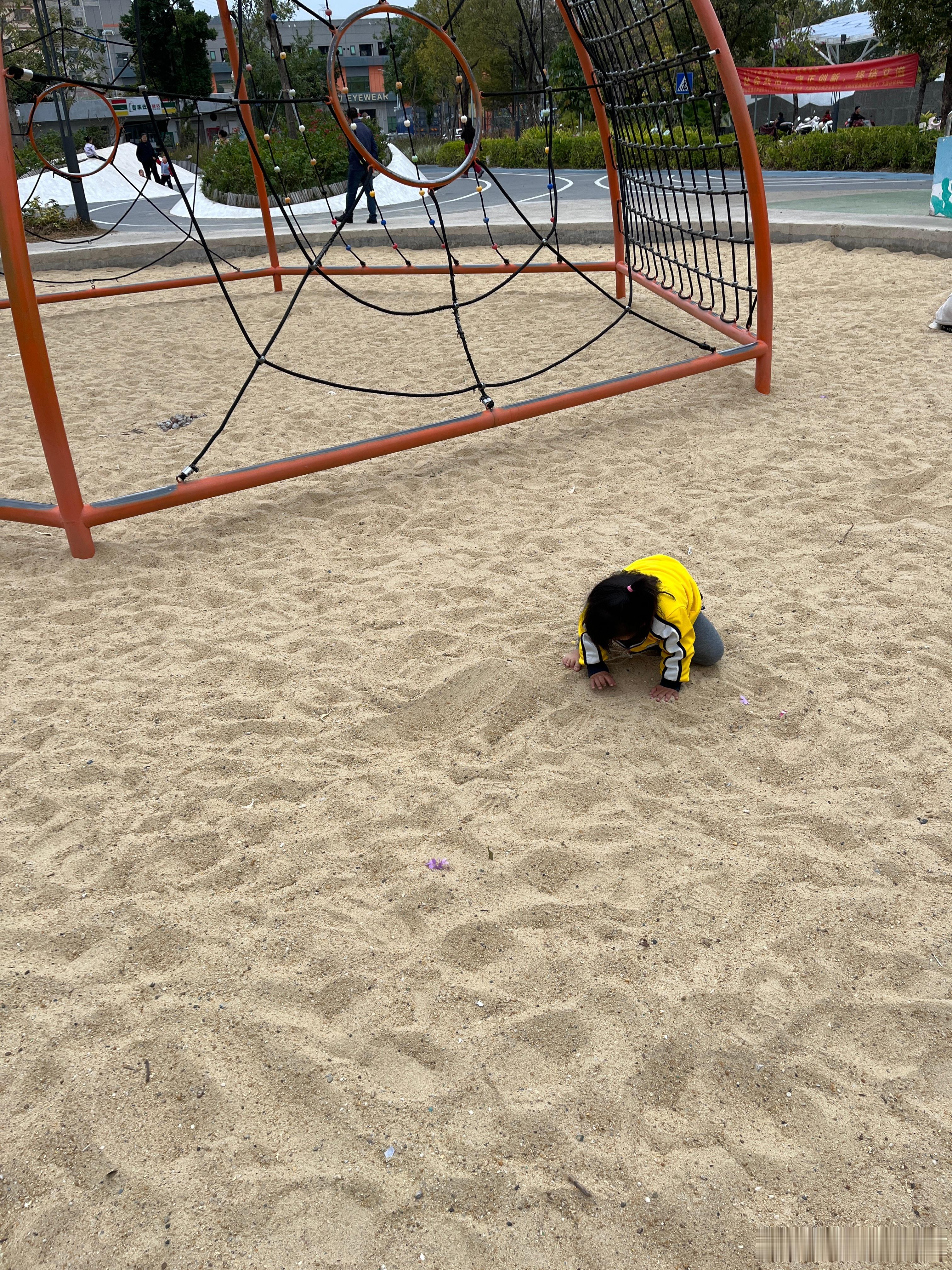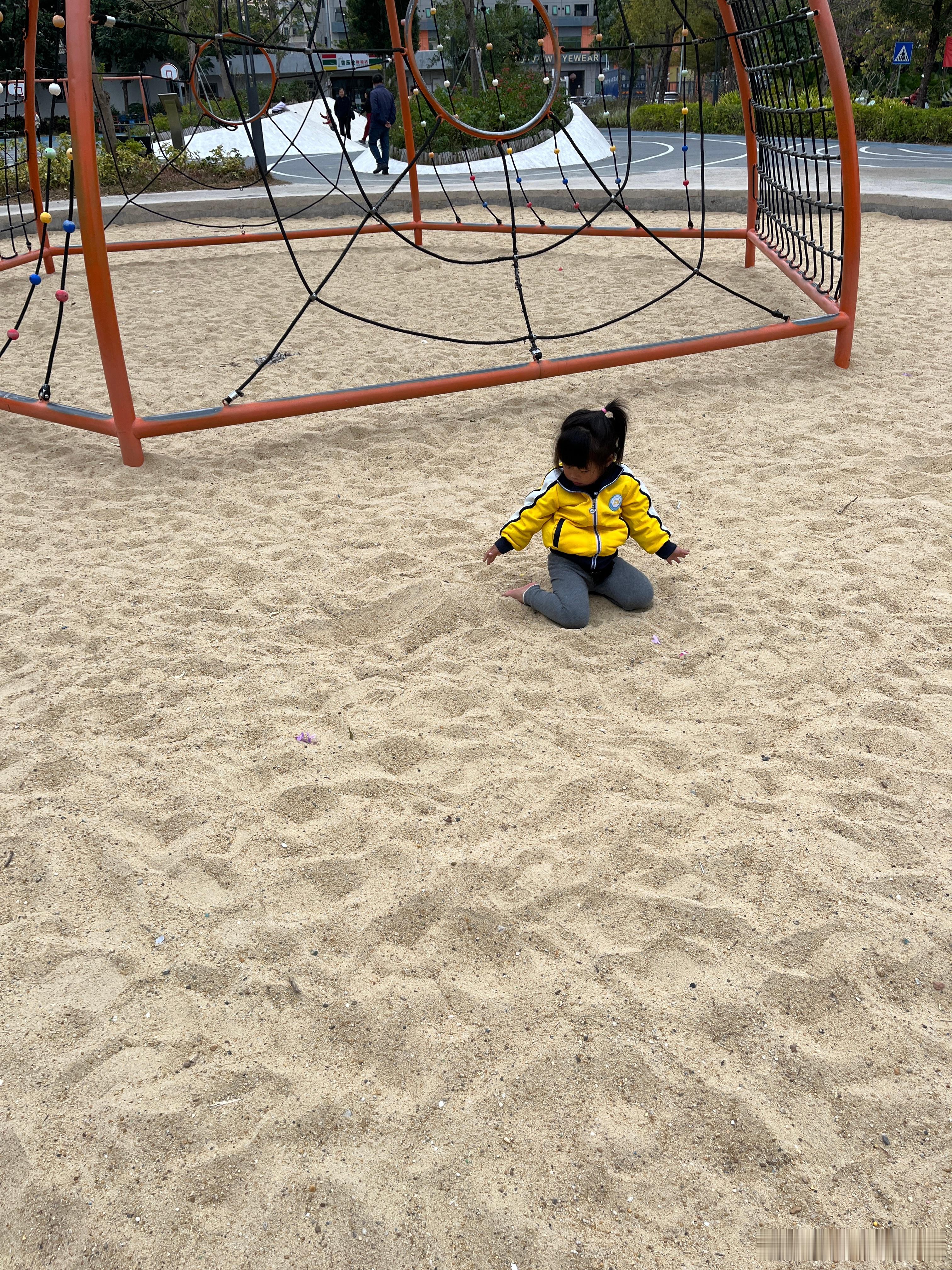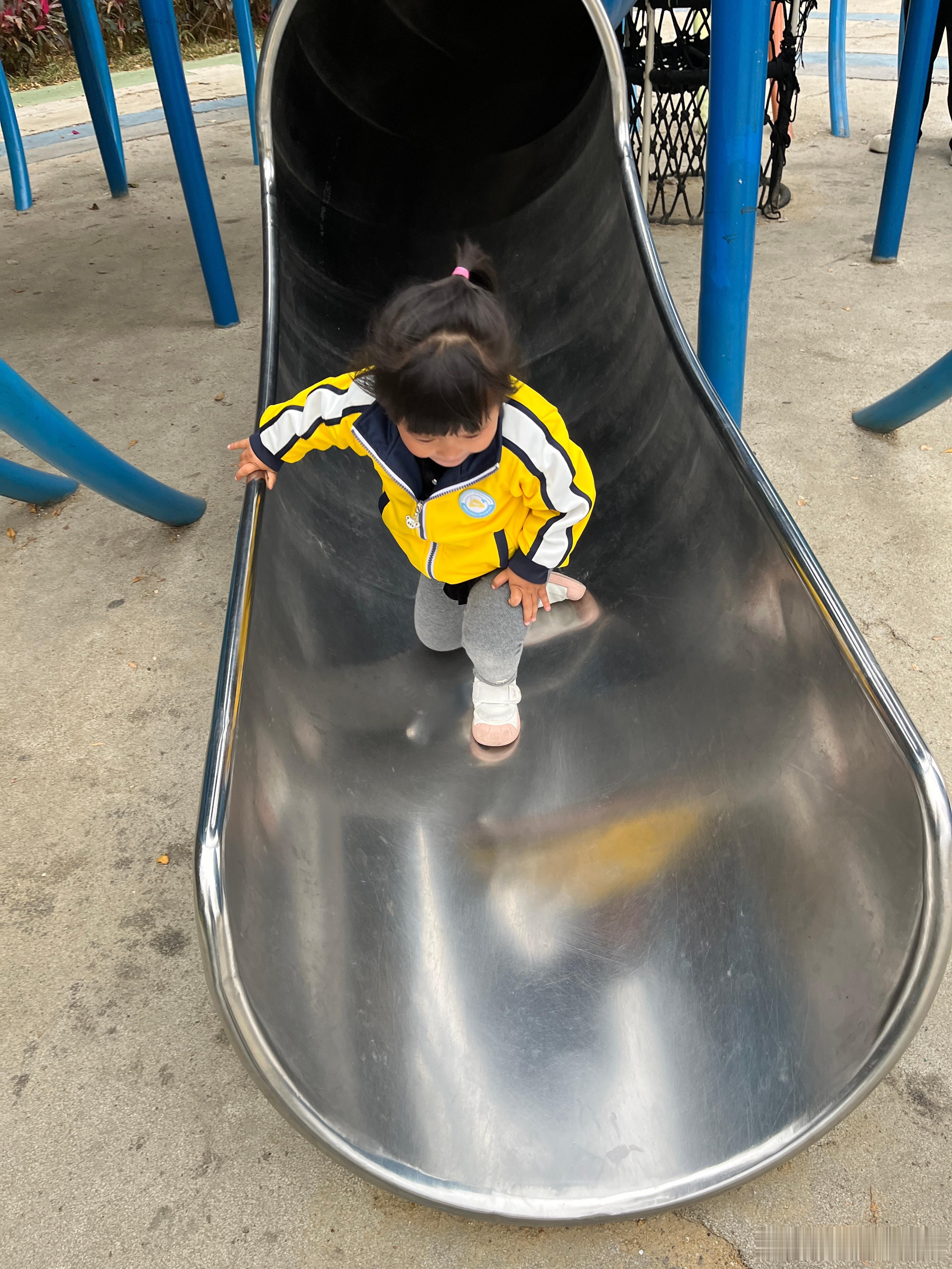 放学了,我以为她今天不来公园,阴天,开始降温。柠宝说要来,和同学玩滑滑梯,好开心,滑了两圈,又来玩沙子,没给她带工具,只能徒手挖了。