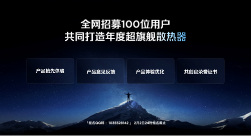 同时姜超在发布会上正式发起了《你的设备散热,红魔来满足》活动,邀请五位数码爱好者,为其定制一台专属散热设备。而红魔也将面向全网招募100位用户,一起参与到红魔散热器的新品内测活动,与用户共同打造出年度超旗舰散热器。该散热器命名为红魔散热器8Pro,将于年后正式发布。