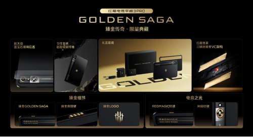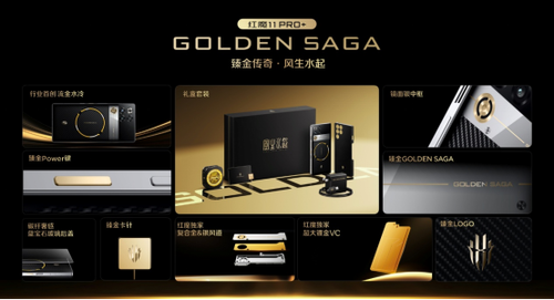 红魔11Pro+臻金传奇搭载行业独有的24GB+1TB的顶配存储组合,内部配备凯夫拉磁吸保护壳、专属磁吸散热器与臻金卡针、120W魔闪快充等一整套臻金体验,售价为:9899元;