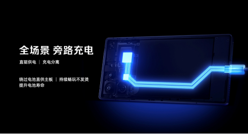 Air机型普遍的续航焦虑在红魔11Air上也不存在。红魔11Air搭载了Air史上最大电池,达到7000mAh。同时搭配120W魔闪快充与全场景旁路供电技术,不仅兼顾续航,也能有效保护电池寿命。