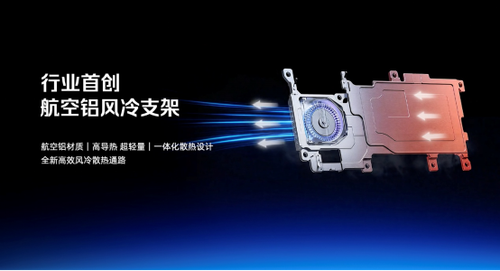而为了把风扇带入更轻更薄的Air机型,红魔为其定制了航空铝风冷支架,航空铝材质不仅具备高导热性能,而且质量更轻、强度更高。同时散热模组的全新组合,也让导热与散热双效协同,导热系数高达180W/mk,导热系数提升了57%。