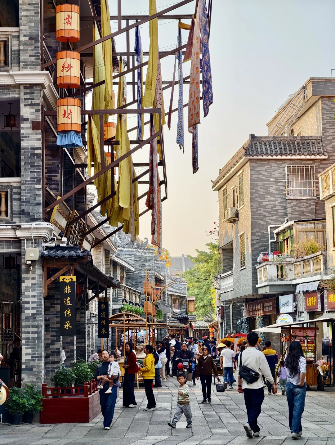 婚俗馆,石板路、摇橹船、特色建筑群、香云纱非遗博物馆和现代咖啡馆结合,非遗特色墙面以及美辰设计。周末有市集,本地小吃等等