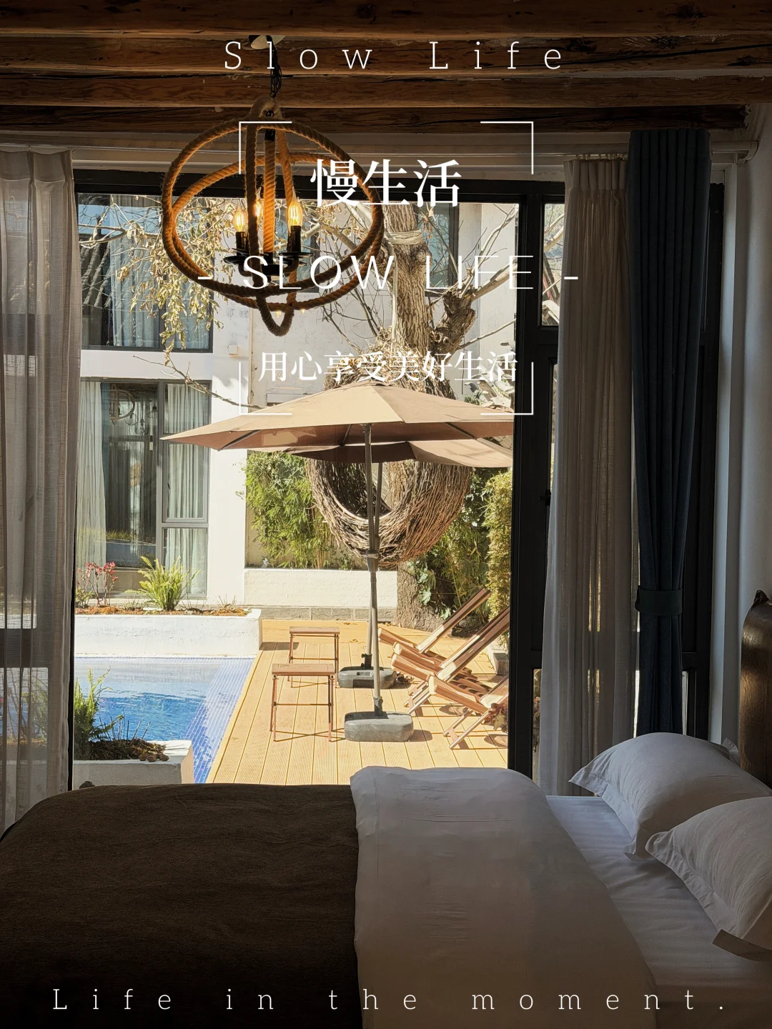 ✅ 中庭的泳池绝了!蓝天白云倒映在水面上,躺椅上一瘫,吹着风喝着下午茶,恍惚间还以为自己在东南亚度假🏖️