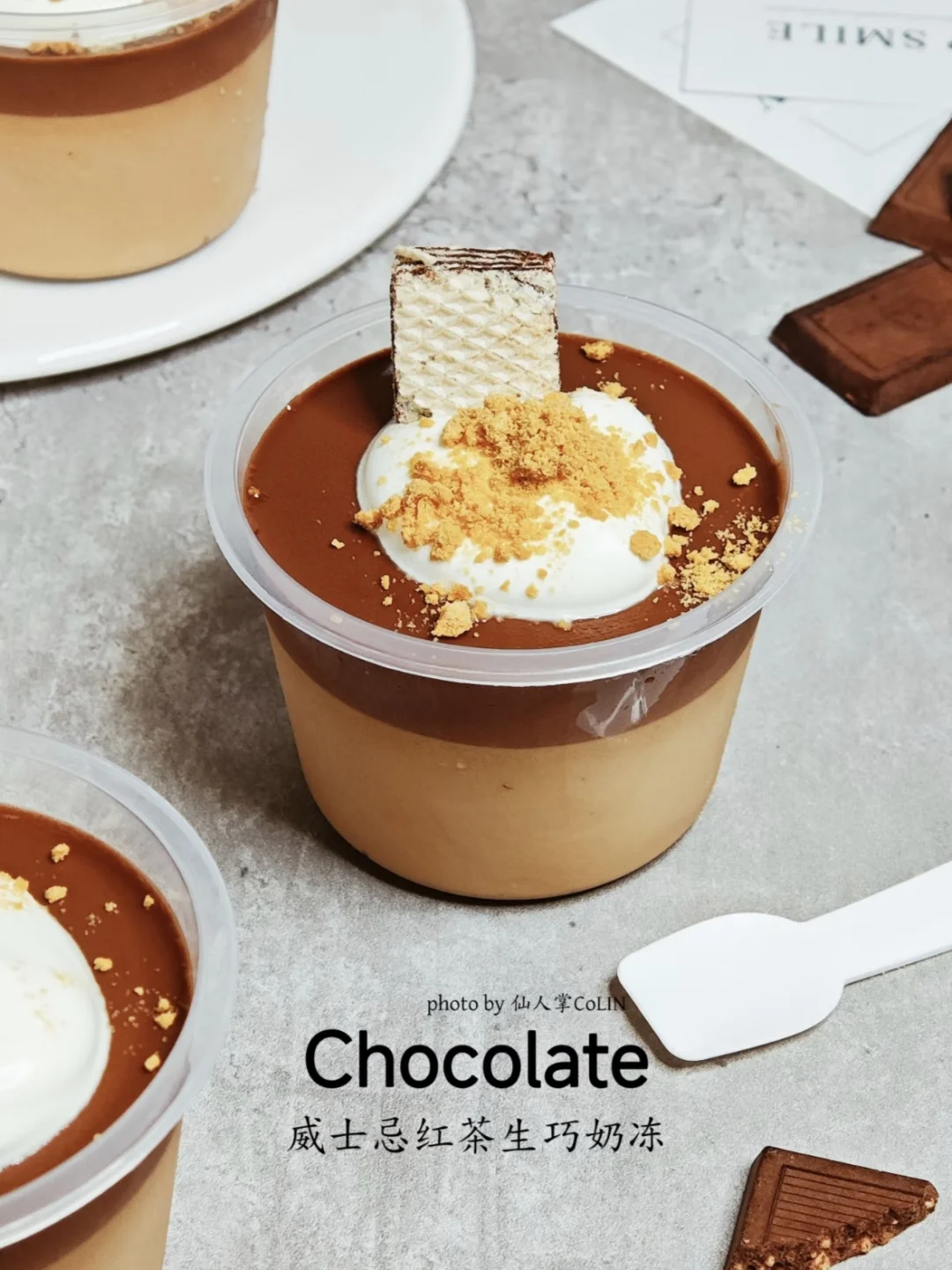 牛奶500ml|淡奶油300ml|细砂糖40g|可可粉20g|巧克力30g|吉利丁片10g