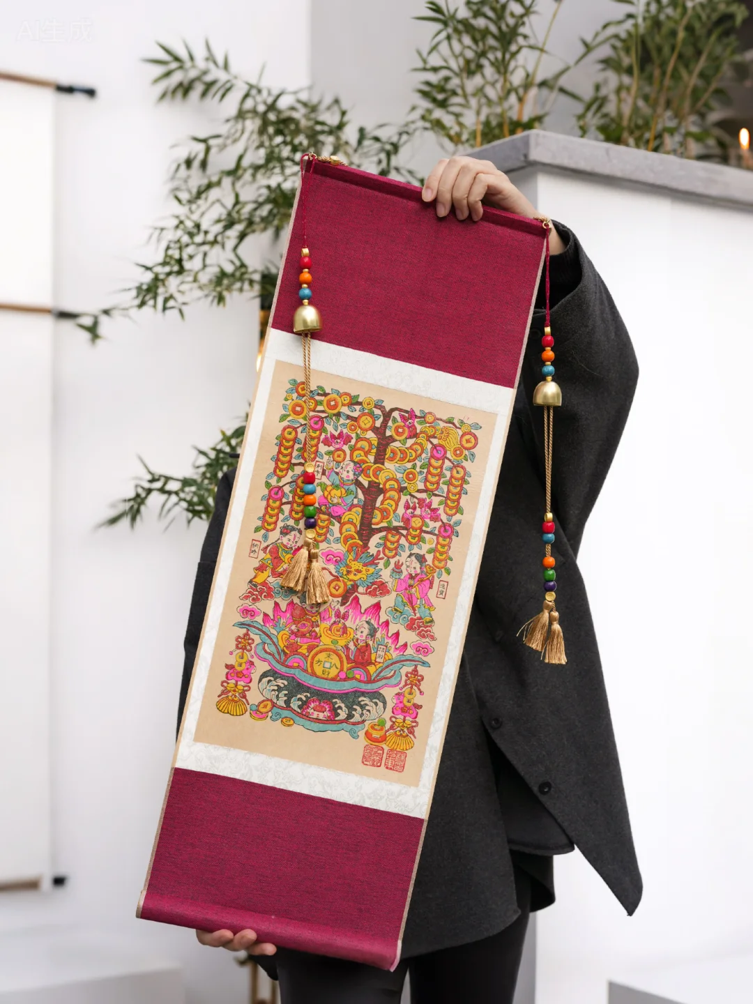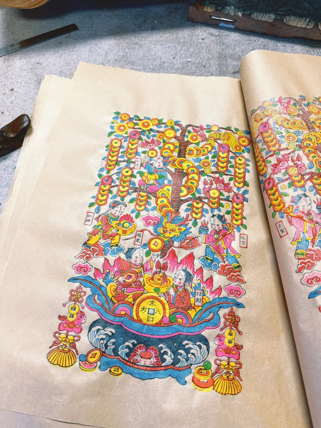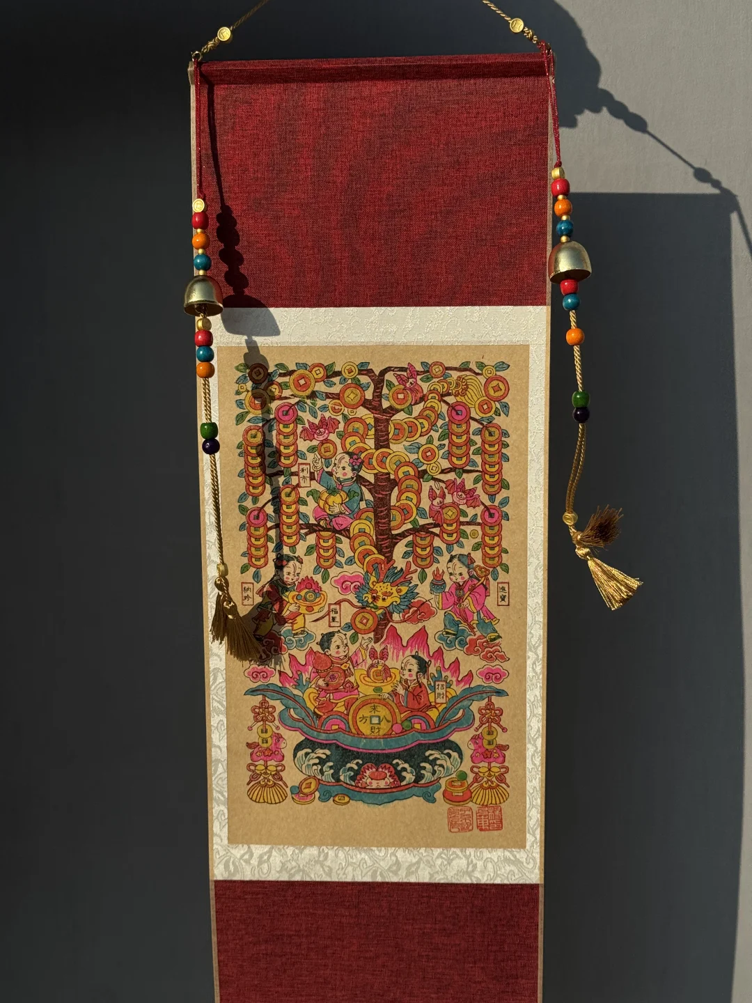印金在光线下拥有着不同的光泽 家里像挂了个聚宝盆!!! 印金工艺在年画里 非常难得一见 我们为增加“摇钱”的设定 不惜成本让今年的五福摇钱树 变成更好看更“有钱” 不仅如此 我们还把年画变成了卷轴的形式 无需装裱就能装饰你的家 快到新年挂上这幅摇钱树 家里、办公室都可以 开年就开始旺起来~ 库存已经陆续到货 按照订单顺序发货 2026你们一定来财!!
