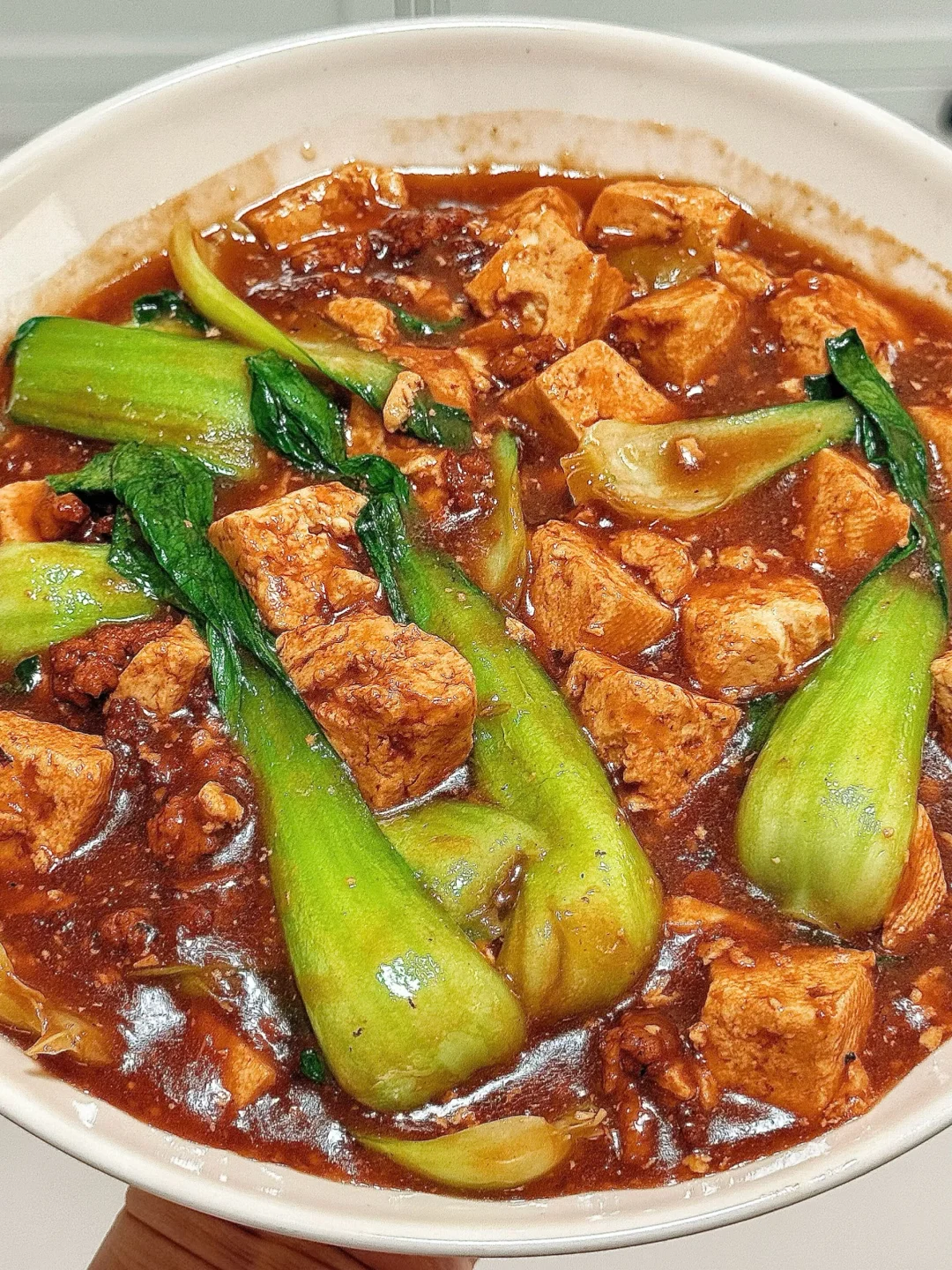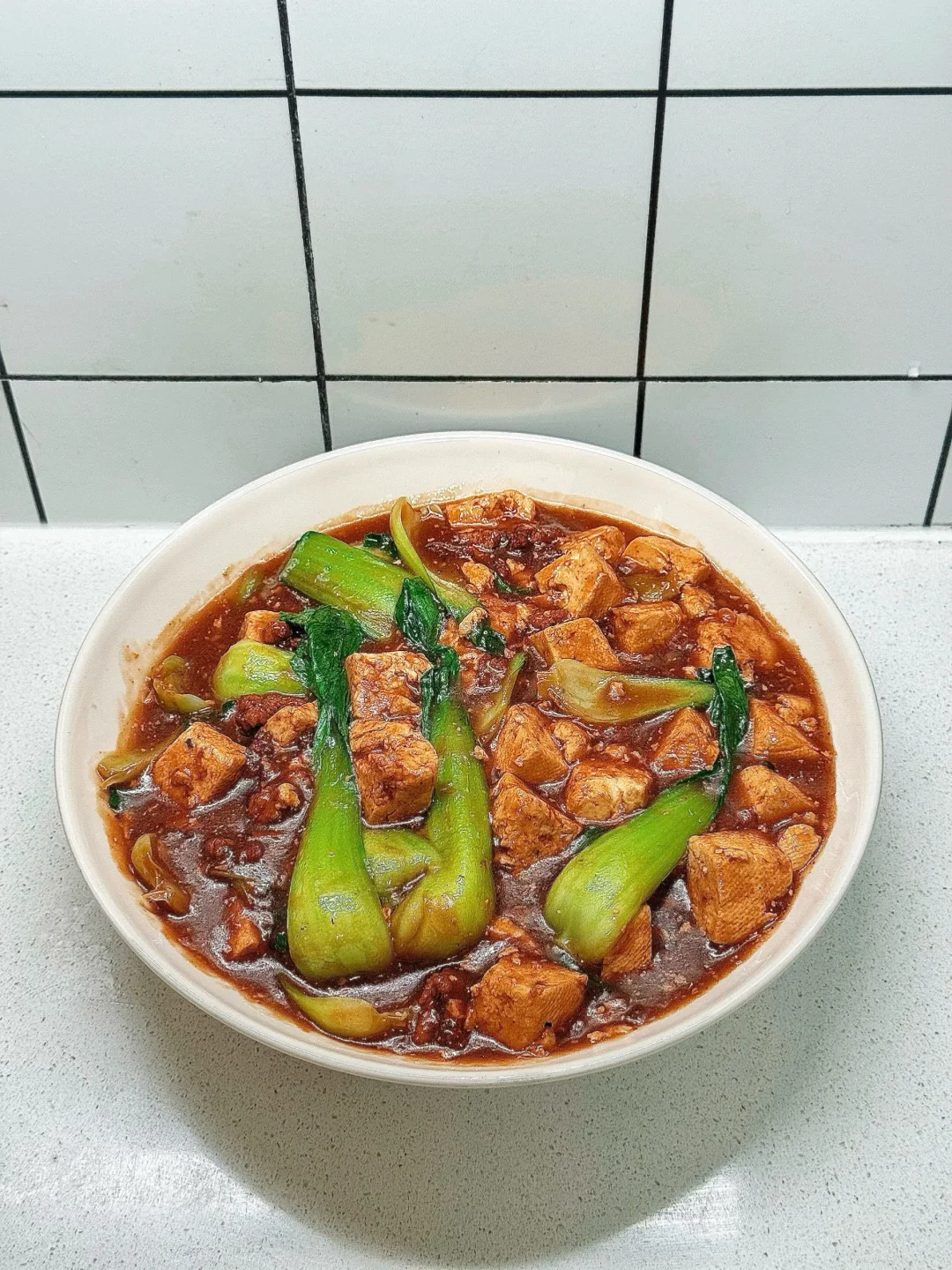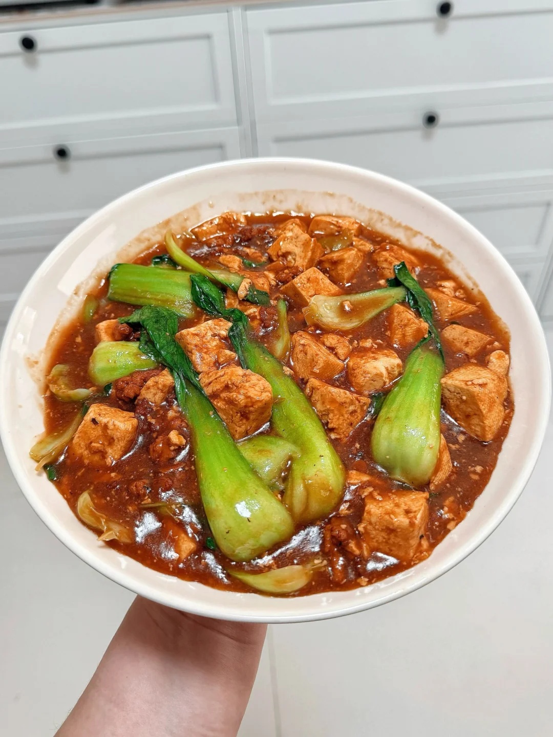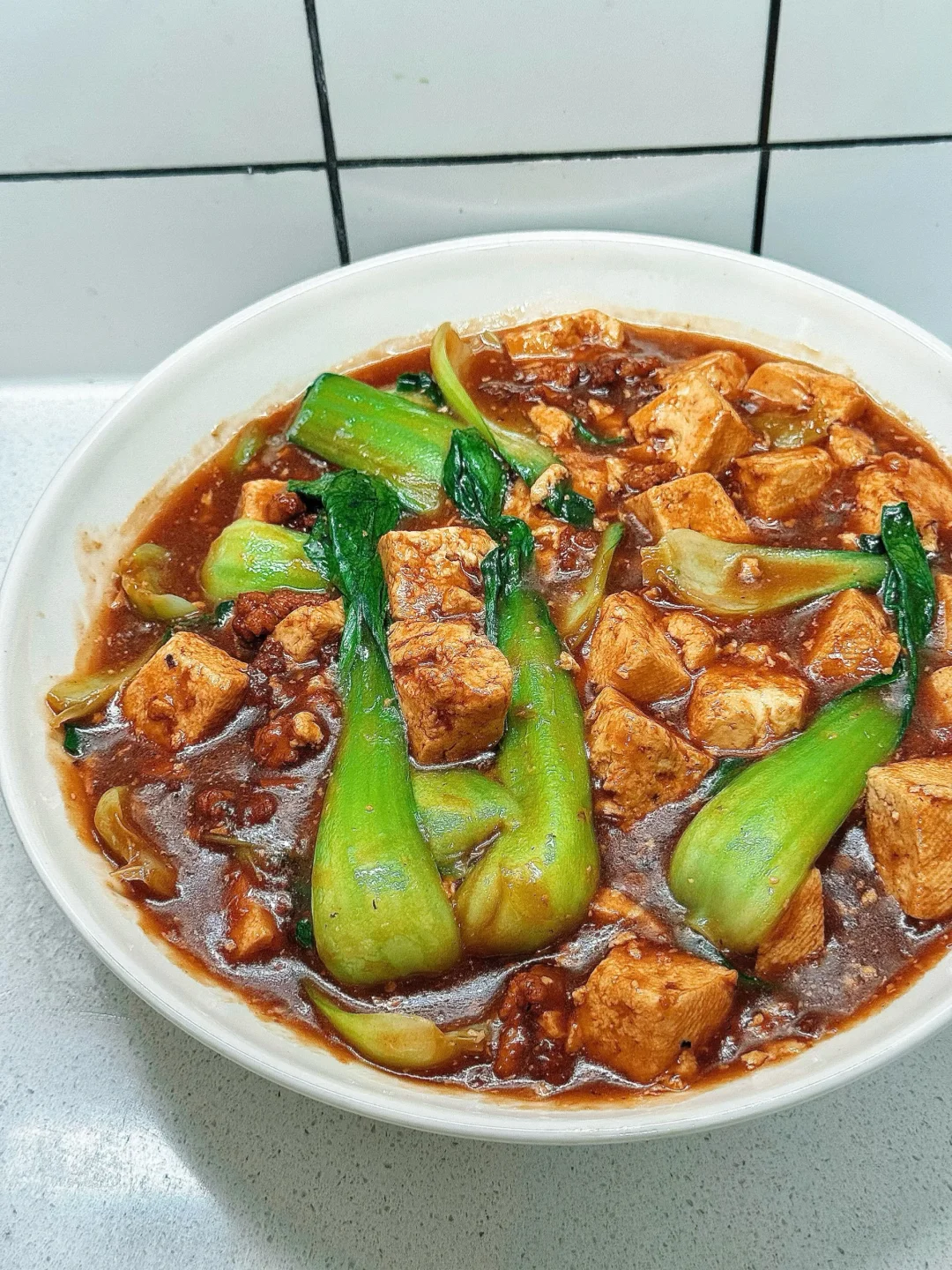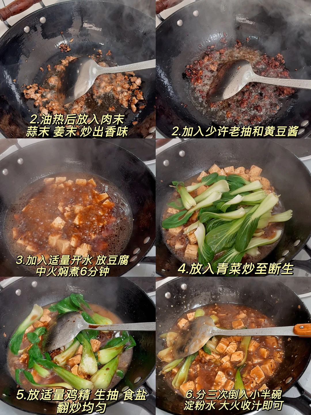 肉末豆腐炒青菜真的太下饭,快来试试做法吧~ 📜食材:青菜、豆腐、肉末、蒜末姜末 🍳做法: 1⃣️起锅烧油,油热后放入肉末,姜蒜炒出香味 2⃣️加少许老抽和黄豆酱,翻炒均匀 3⃣️加适量开水,放入豆腐中火焖煮6分钟 4⃣️放入青菜炒熟 5⃣️适量鸡精,生抽,食盐调味 6⃣️分三次倒入小半碗淀粉水,大火收汁即可。