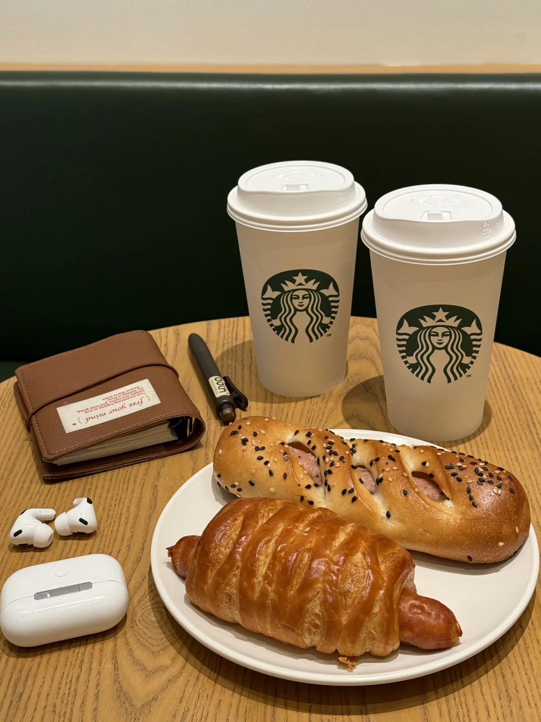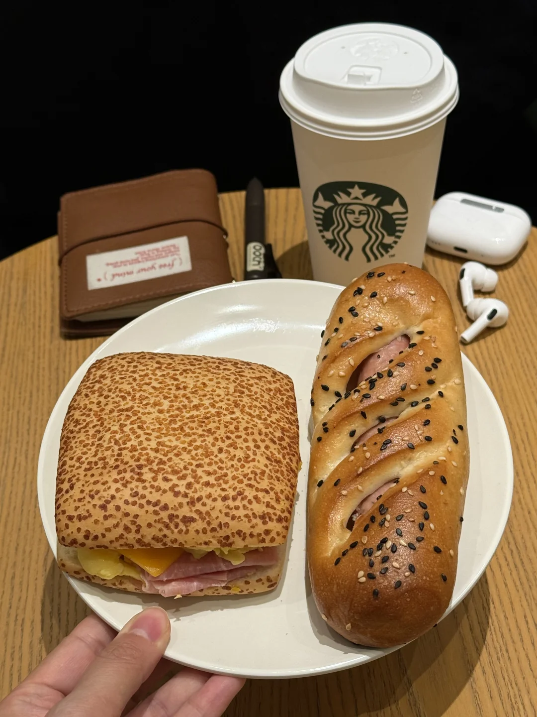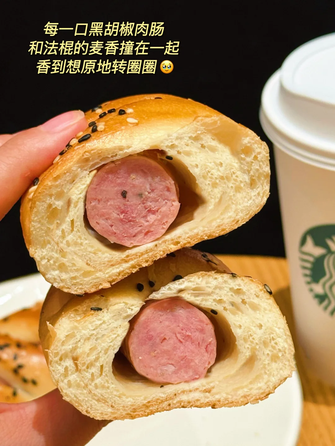 黑椒香肠的辛香直接把困意干翻!法棍外脆内韧,越嚼麦香越浓,配冰美式一口闷,困意?不存在的!打工人直接原地支棱起来🚀!