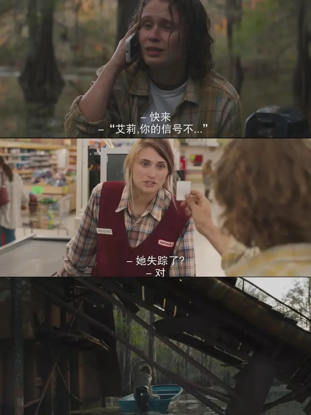 ⭕️时空二:女主妹妹坐船离家后,离奇消失。切口整齐的鳄鱼、早已灭绝的四目蛾,所以细节都透露着不可思议和不简单