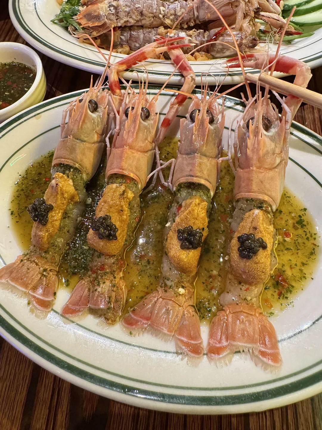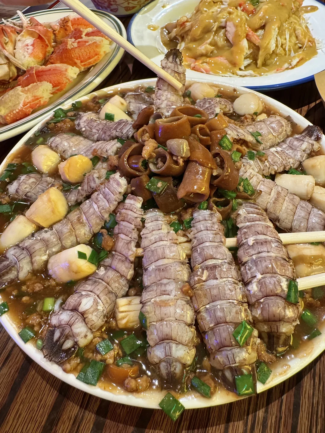 混酱肠粉好吃起来太香了🥹没吃过这么好吃的酱!! 软软糯糯的肠粉!!!!还有咖喱鱼蛋和烧卖!! 冷吃的肉串串🤤每串卤味都会涂满了酱汁, 口感丰富好好次😋 还有生腌海胆鳌虾、脆炸菠萝蜜、皮皮虾海肠捞饭、带籽的笔管…都不踩雷,可以闭眼点的程度!