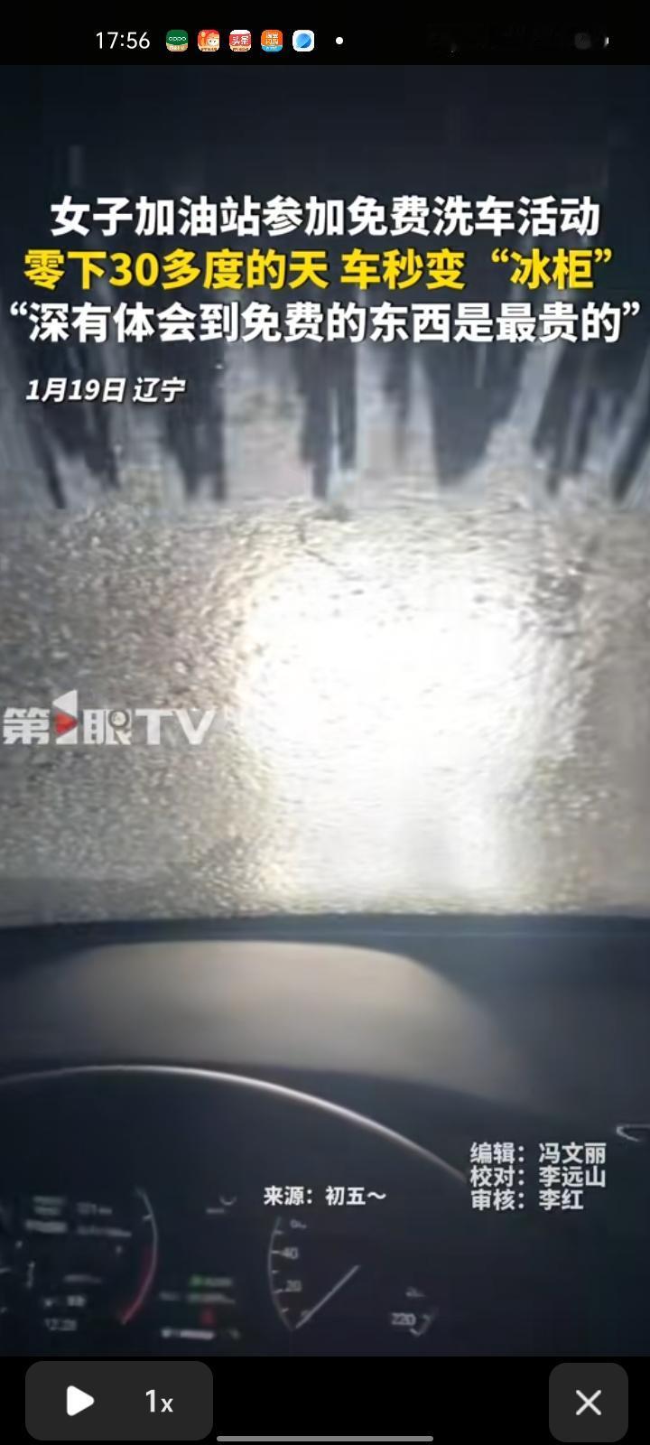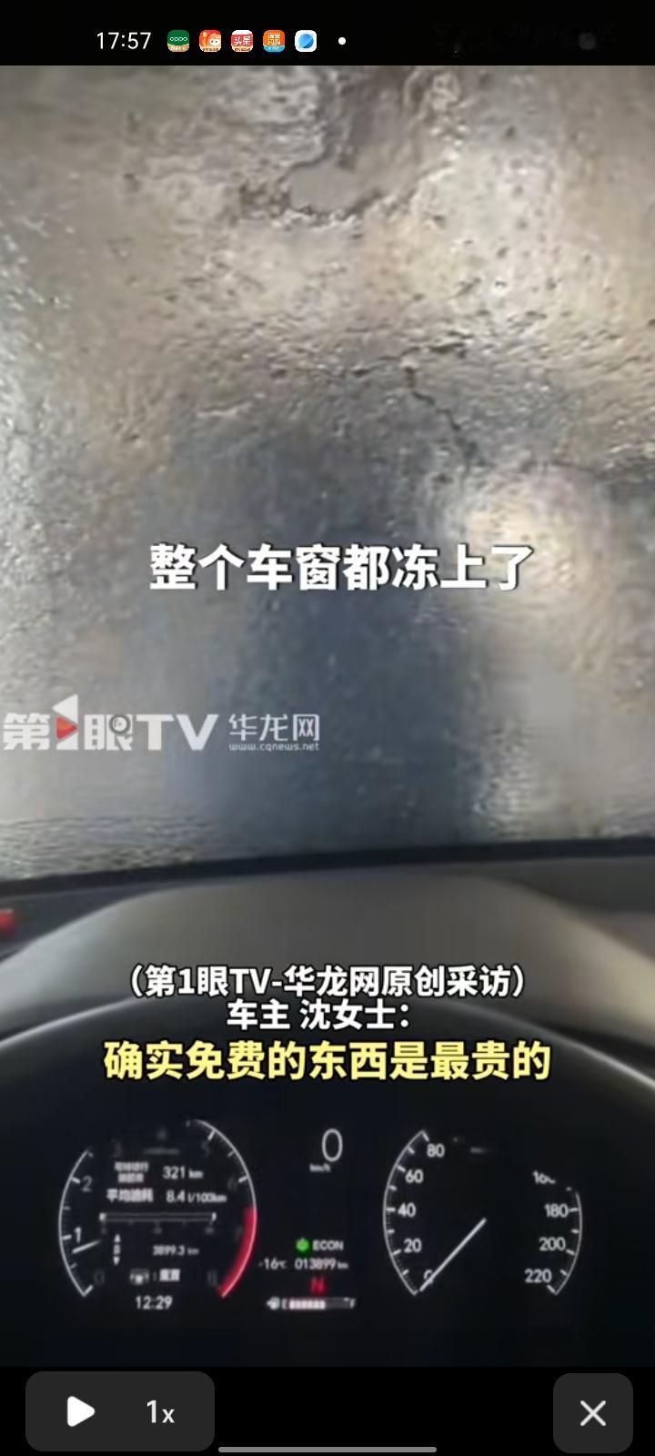 1月19日,辽宁沈阳。女子发视频表示,自己去加油站参加免费洗车活动,不洗白不洗,结果工作人员用水洗车窗立马就冻上了,终于体会到免费的东西是最贵的。现在车停又停不了,出又出不去,洗完之后用小铲子一点点抠下来的。