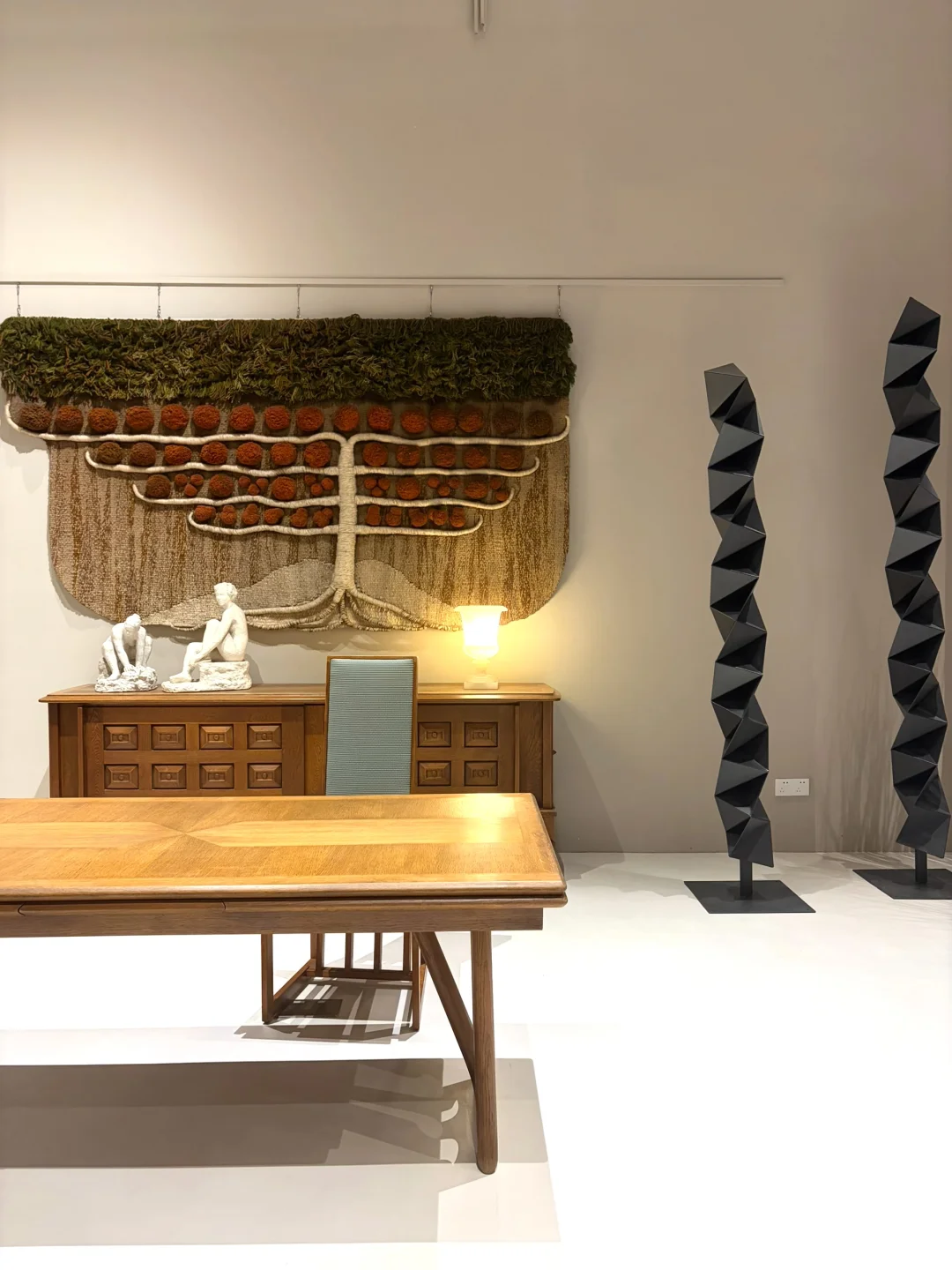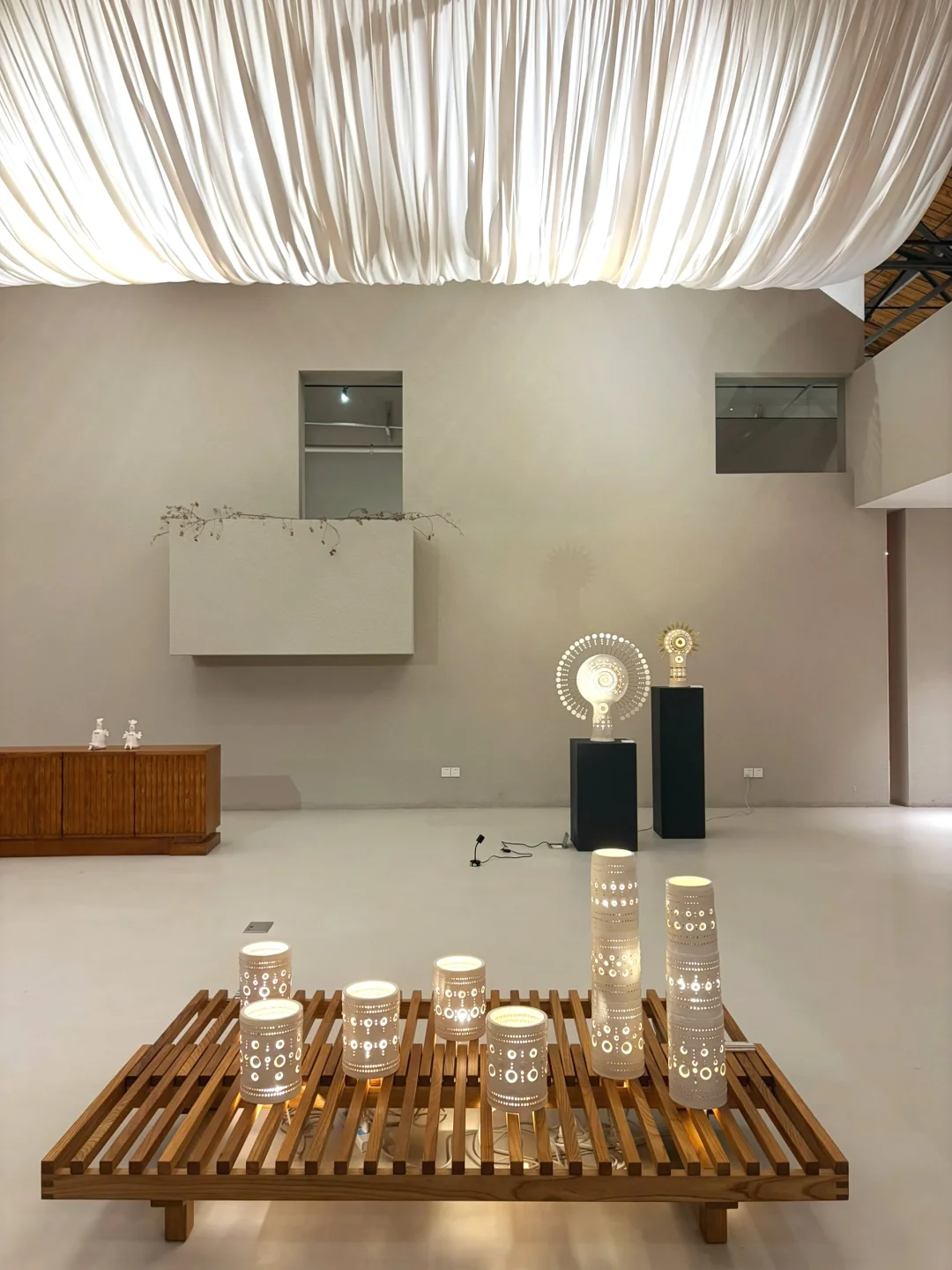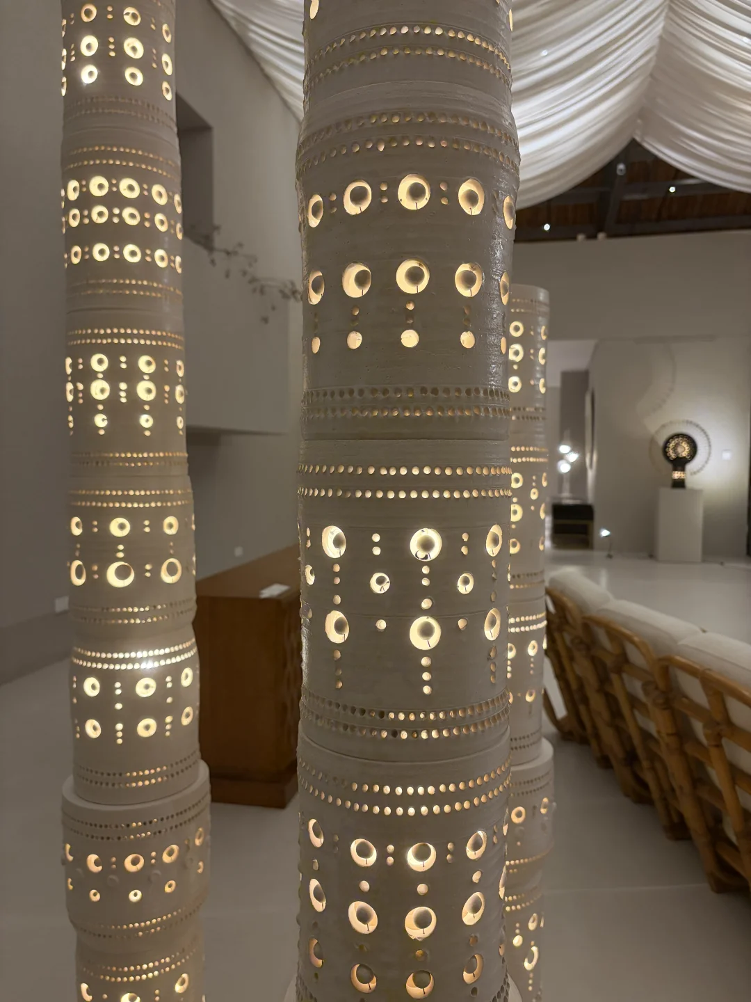 值得反复逛的一家中古家具店 每次去都有新的收获 这次正好赶上的展览 来自法国陶艺师Georges Pelletier Totem"图腾"灯 完全手工制作 每一盏都是独一无二的孤品 他把陶土当作雕塑来创作 不规则的镂空圆孔+手工捏制的小球排列 开灯瞬间 光影从孔洞中温柔透出 氛围感直接拉满💡 比起灯它更像一件会发光的雕塑艺术品