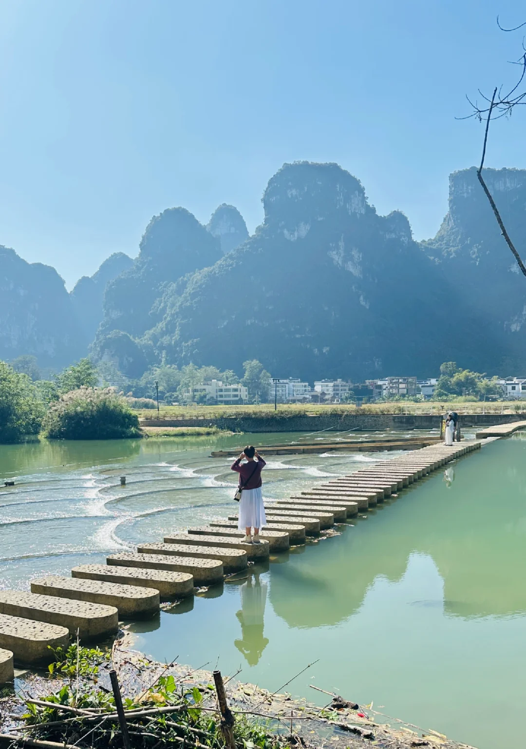 5、乘坐竹筏(120/人上岸后可拍九曲桥,图4桥洞机位。