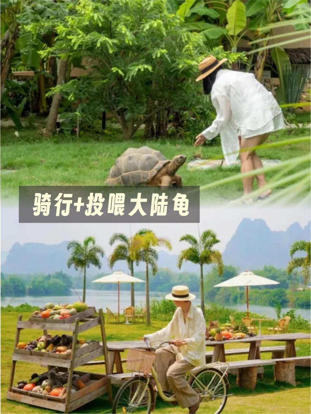 🌟在甘蔗地里骑车,就像在画里游玩~晚上一起做手工、喂大乌龟、看露天电影,慢悠悠的度假感拿捏了。