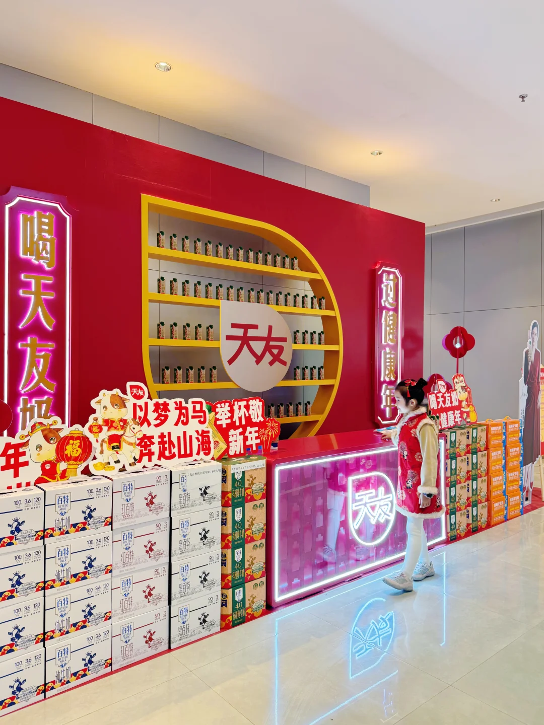 陪宝贝过周末居然在重庆金沙天街 遇到天友的派song活动 红红火火的好喜庆呀~👧🏻女儿眼睛都亮了! 还是大明星🌟蒋勤勤代言呢~ 领到了新鲜牛奶和可爱周边,开心到转圈圈! 重庆崽儿的童年回忆+1,现在也能放心给女儿喝啦💕