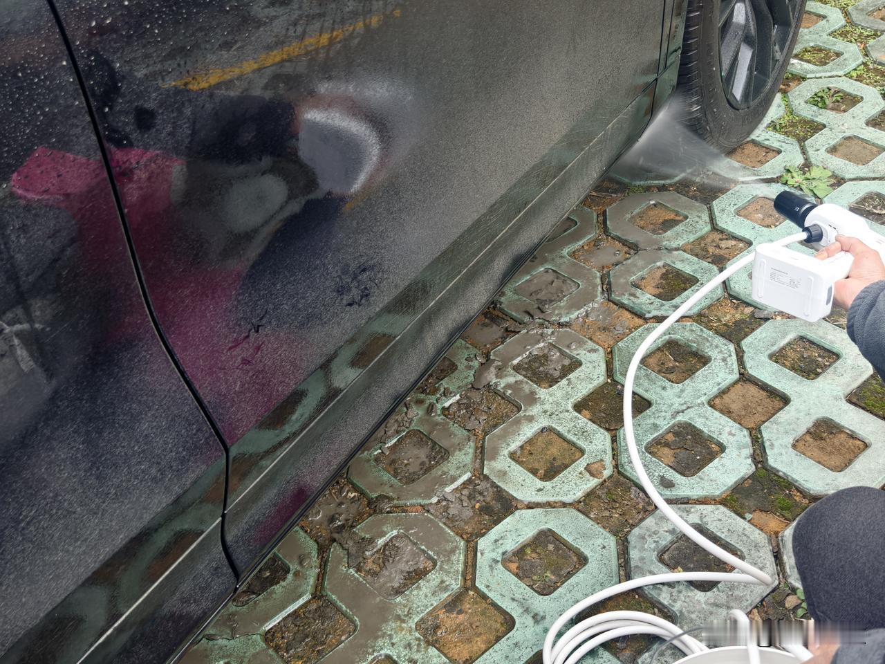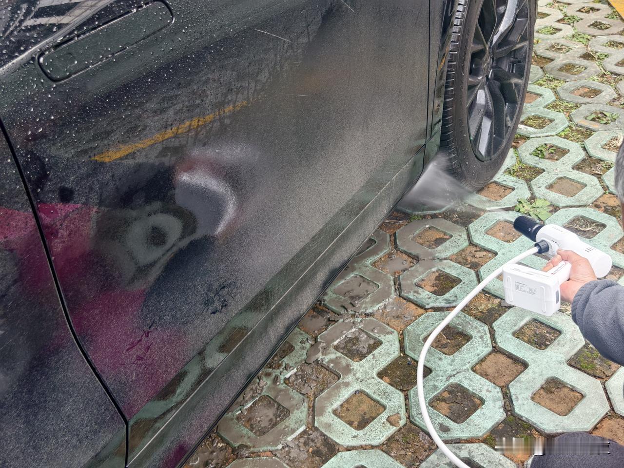 极氪的洗车枪非常好用,电池比较大,续航时间久,喷射的冲击力比较大。用下来感觉非常不错。这边经常下雨,去工业区基本上几天就很脏了,导致我基本上每周要洗一次车。这样自助式拿几个桶过来洗一下就非常常见的场景。