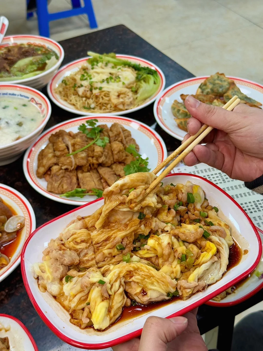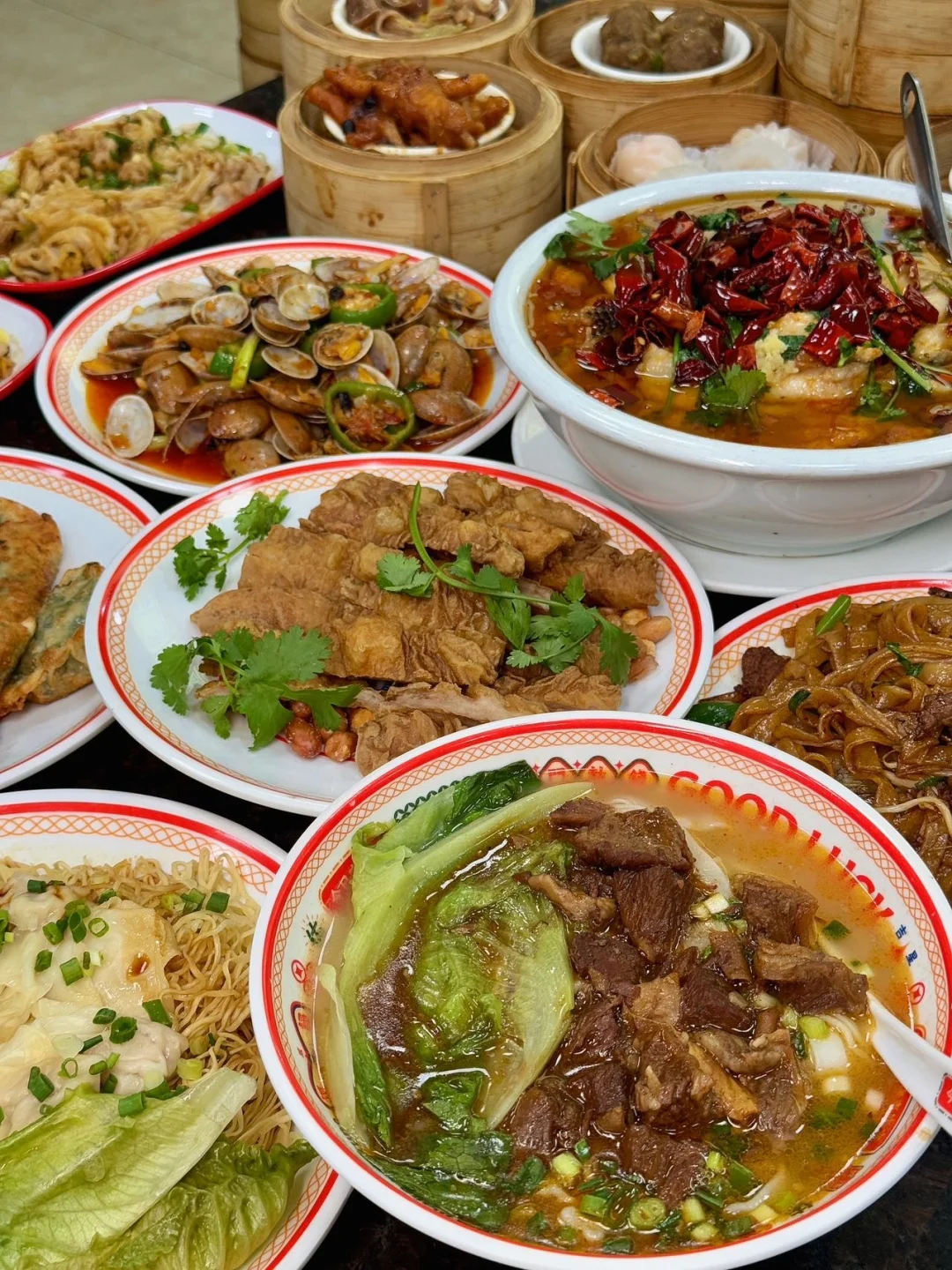 - 老广人吃点心真的不分时间🕐哈哈哈… 虽然味道中规中矩😋但是便宜啊!!! 能吃出食材都是新鲜现煮,有烟火气! 虽然是老字号 环境卫生做得足够好👍 而且看见这个价格真的抵到烂。。。 价格表琳琅满目,有肠粉、炒粉,粥🥣,汤粉汤面,还有自助蒸笼茶点,几十种小炒菜!!!这里价格实惠,不仅本地人喜欢、附近工厂的工人过来吃上一顿宵夜😄性价比敲高💯 -
