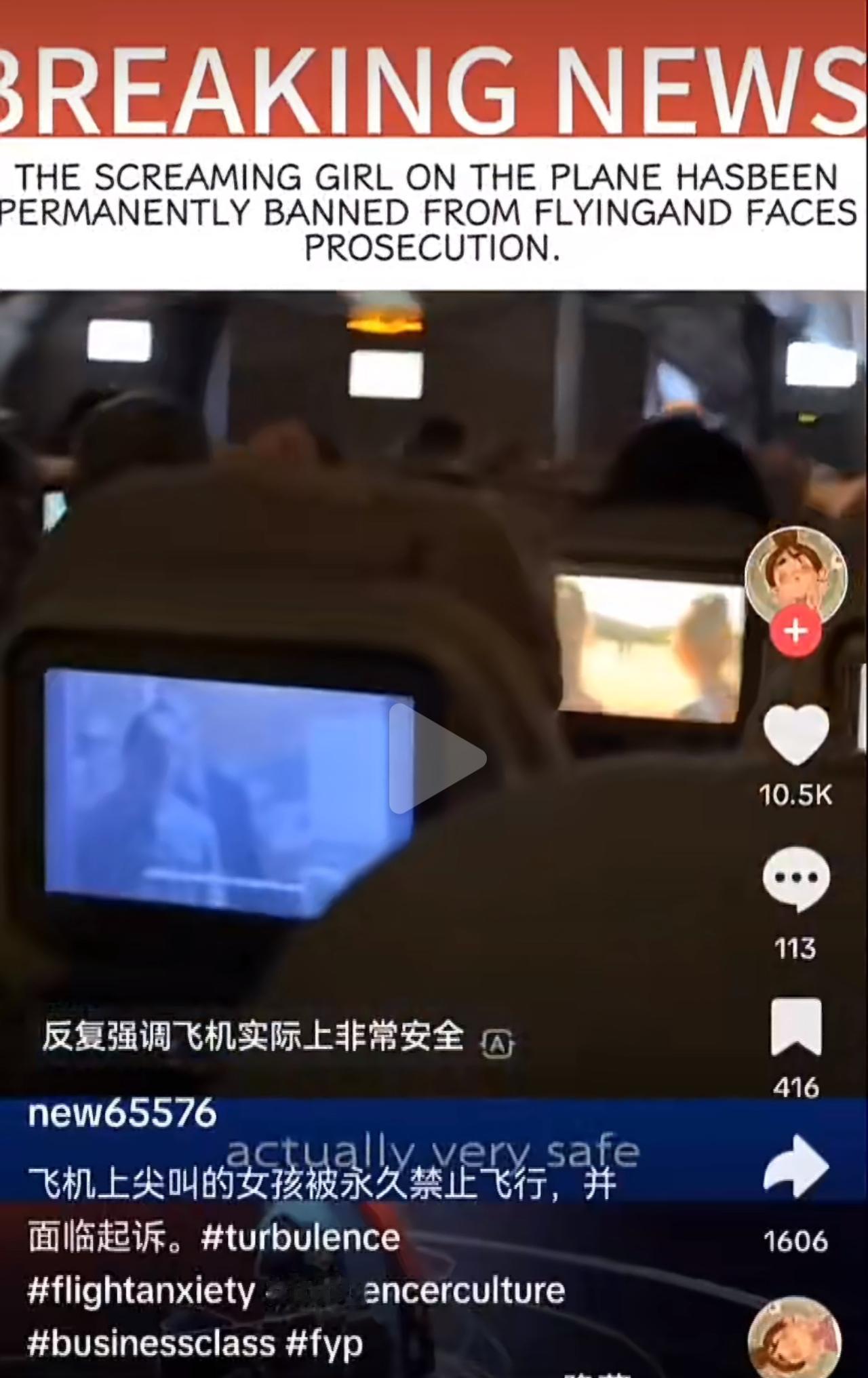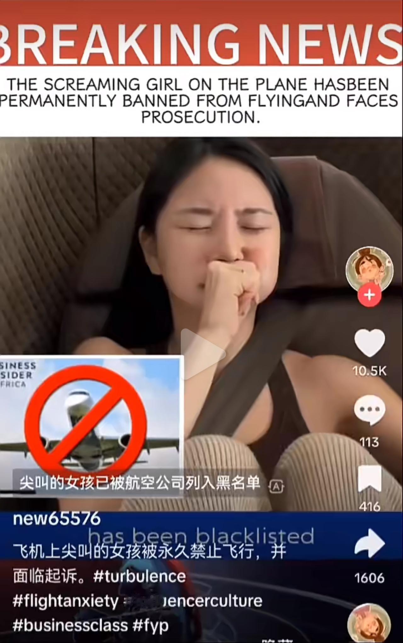 新加坡女网红Mia,航班遇上气流时突然放声尖叫,还把全程拍了下来发上网。视频里前一秒还喊得撕心裂肺,下一秒就切换镜头点评飞机餐,网友直接炸锅:“真要是惊恐发作,哪还有闲工夫管镜头?” 她出来解释,说去年湍流事故摔成脊椎骨折,这次没吃药触发了创伤后应激反应,还晒出了X光片。可不少医生都直言,真正焦虑发作的人,大多紧闭双眼、浑身僵直,根本没精力兼顾拍摄和剪辑。 全网彻底吵翻了!有人骂她拿心理健康当流量密码,纯属“随地大小演”;也有人替她说话,觉得创伤反应因人而异,该多些包容。 更让人关注的是,网传她可能被航空公司禁飞。其实民航有明确规矩,单纯情绪反应顶多安抚,真要禁飞,得实锤她是故意表演还扰乱了机舱秩序。现在航司没官宣,这事却早超出了个人争议。 飞机是密闭空间,一声失控尖叫,很可能引发全舱恐慌,干扰机组工作。流量再诱人,也不能把公共空间当秀场,拿航空安全当赌注啊。 真心盼着所有网红都能守住底线,别让本该被同情的困境,变成消耗大众信任的炒作。飞机湍流 飞机颠簸 女网红在飞机上尖叫可能面临禁飞