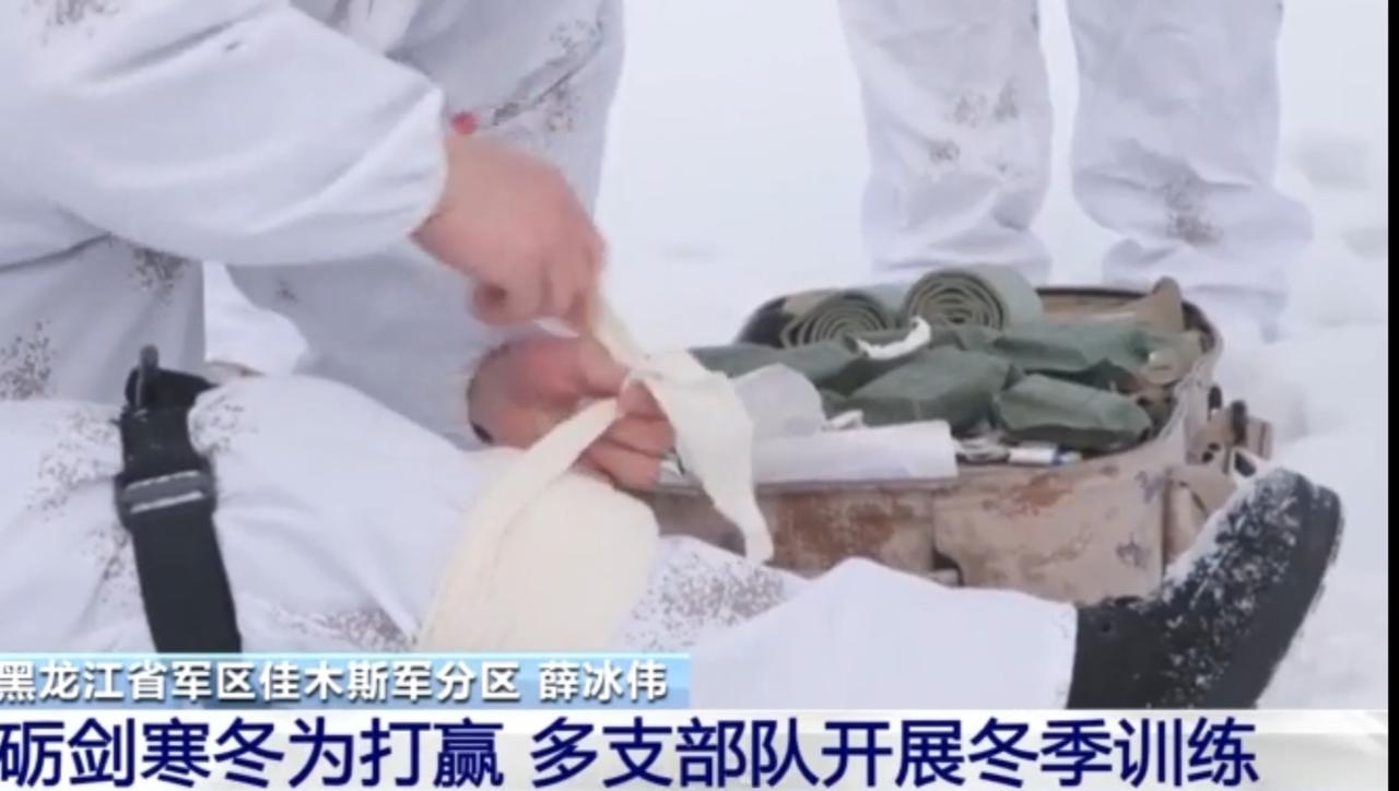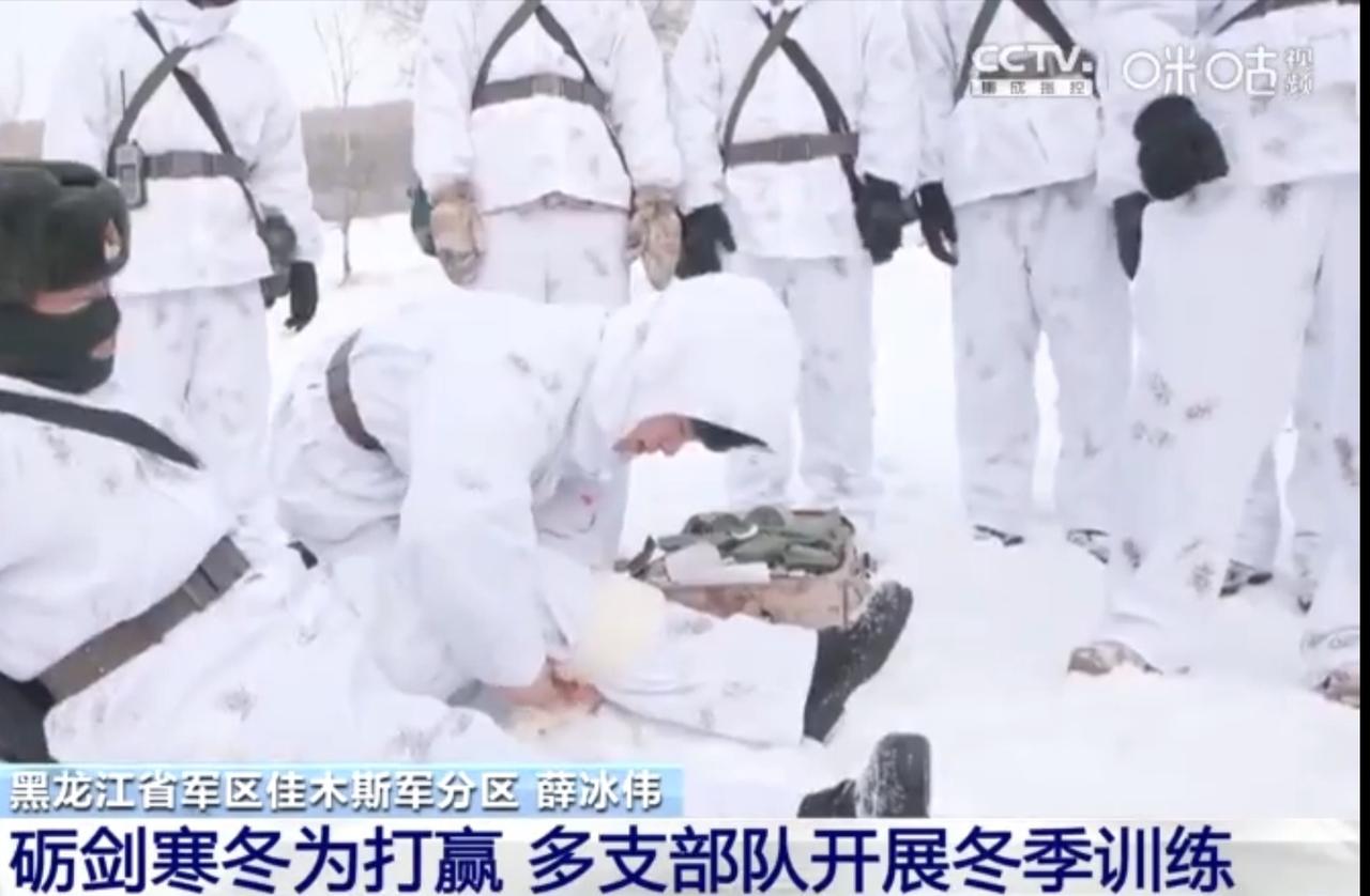 在黑龙江佳木斯军分区的冬季演训场上,官兵们身披白色伪装服,在林海雪原中负重行军、战术警戒。他们在极寒环境下开展战场救护演练,模拟伤员包扎处置,同步进行车辆应急抢修,以实战化训练磨砺战斗技能,用血性与担当筑牢北疆安全防线。