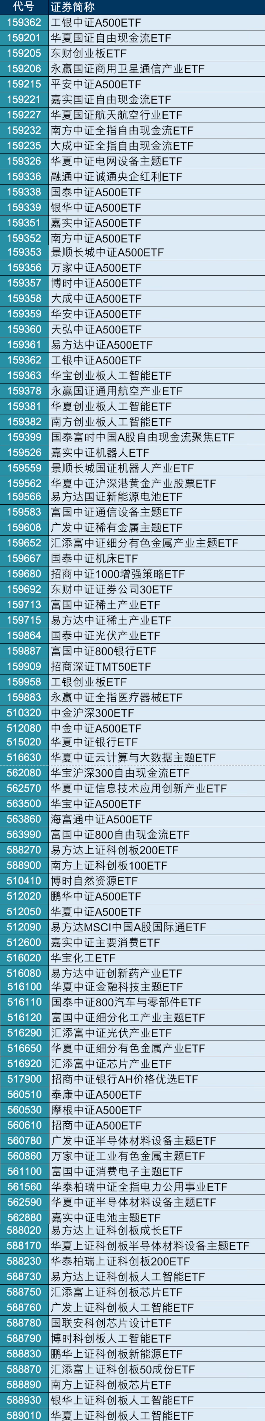 本次被新纳入的98只ETF中,追踪中证A500指数的宽基ETF有25只,占比最高。同时,新纳入的ETF中,还有近20只追踪人工智能或芯片相关的指数;此外,还包含17只追踪现金流和红利策略的产品。