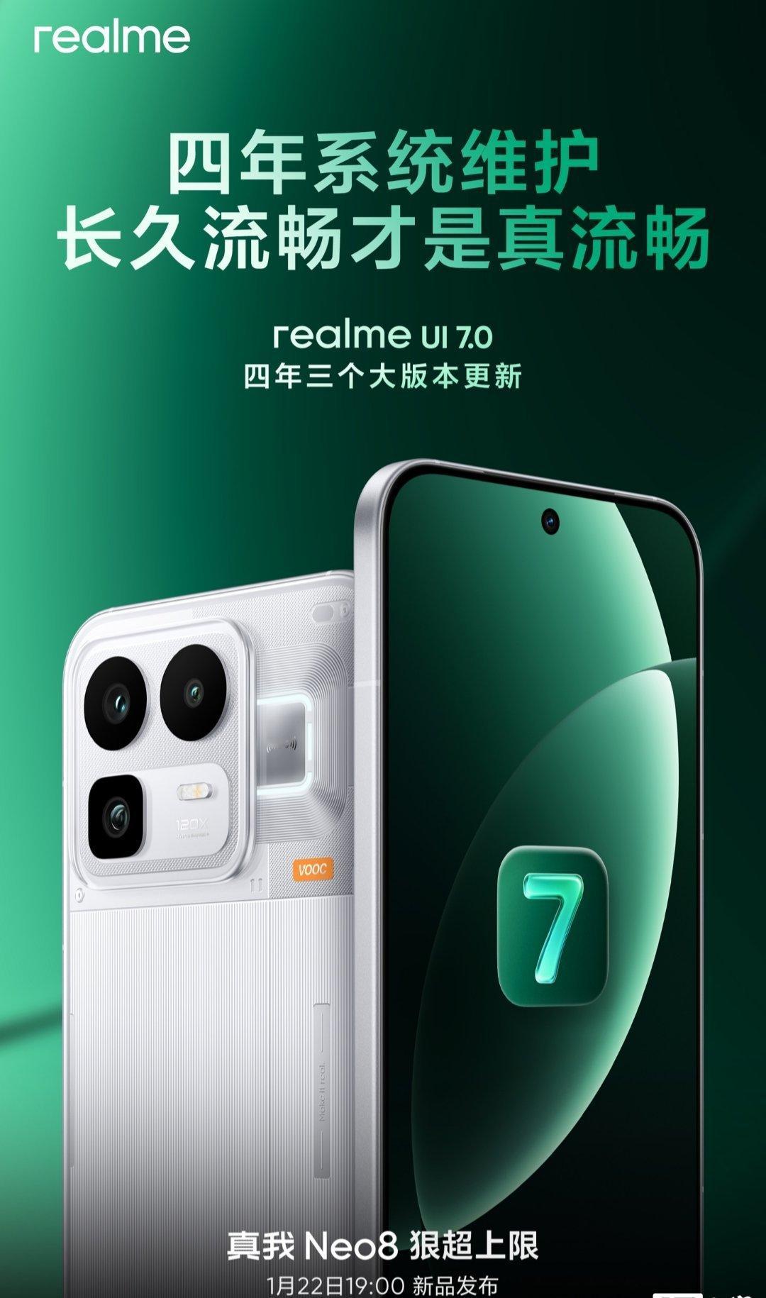 【realme 真我 Neo8 手机支持四年系统维护,三个安卓大版本更新】真我 realme 徐起宣布,即将发布的真我 Neo8 手机支持四年系统维护,三个安卓大版本更新。据介绍,realme 真我 Neo8 预装 realme UI 7.0 系统,支持 AI 闪记、AI 实景对话、灵动窗口、AI 智慧文档等功能,宣称可以陪伴用户一整个大学四年。