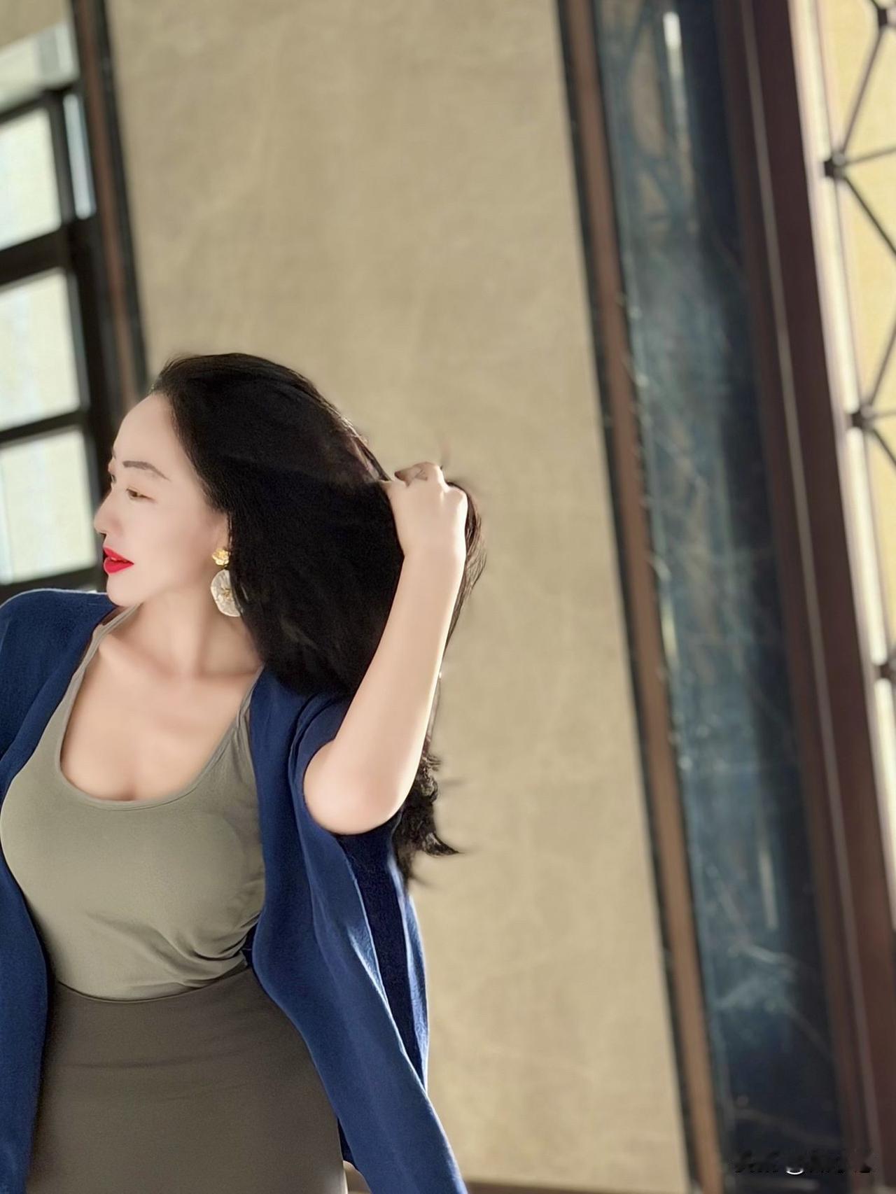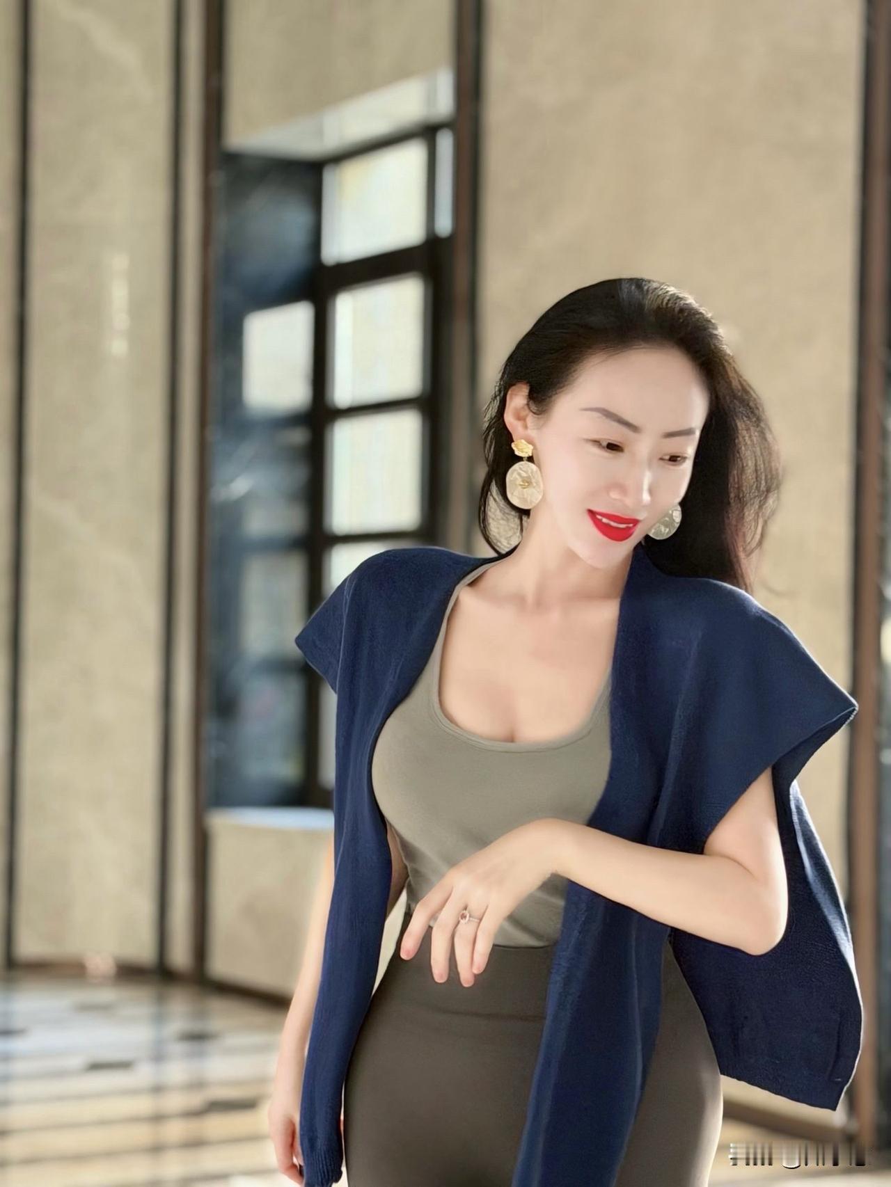 优雅气质,蓝衣红唇,自然光下尽显迷人风采。