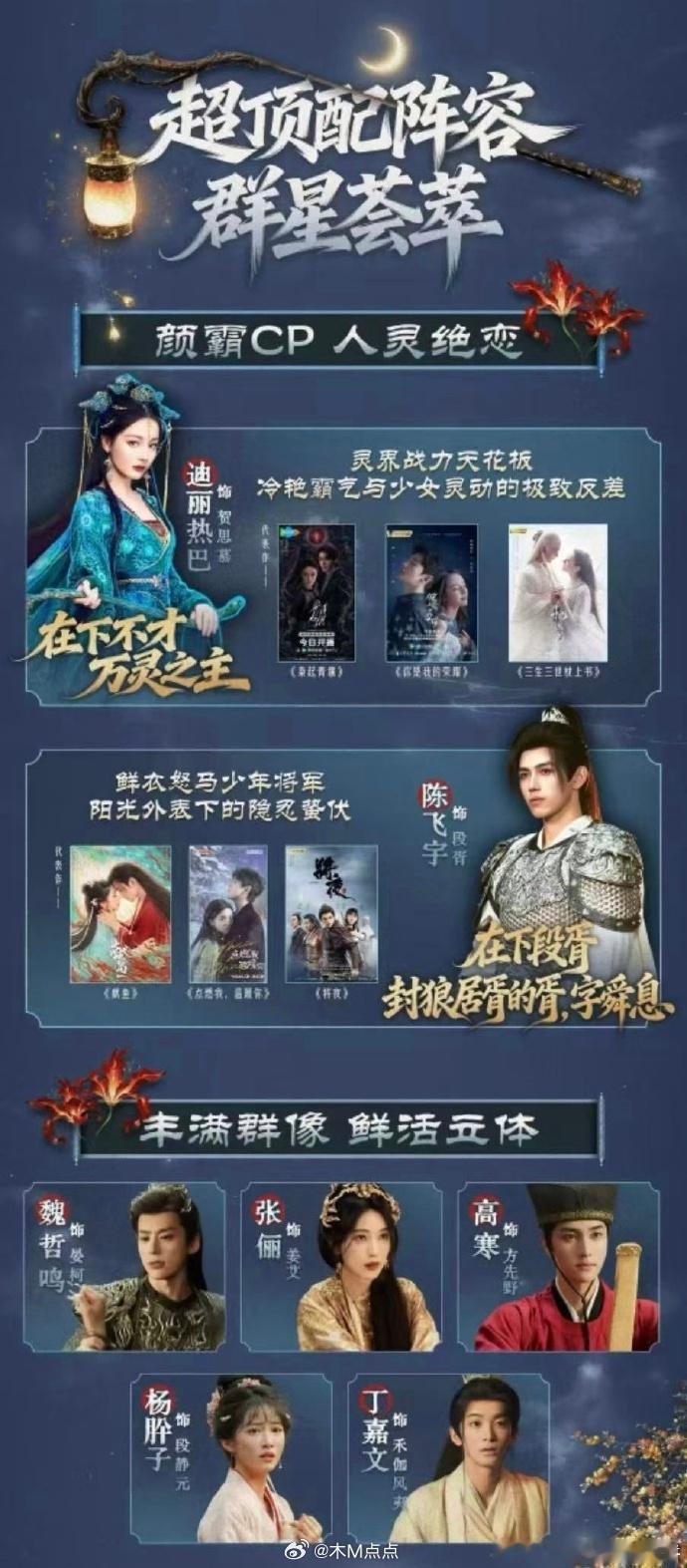 慕胥辞招商 迪丽热巴、陈飞宇 《慕胥辞》招商开始了~刚播完的枭起青壤如果不是被压,成绩会更好。其实,一部剧的价值除了热度,更在于它能不能传递正向的社会价值,能不能让观众有所思考和收获,就比如利剑玫瑰,我觉得热巴的剧总觉得又能带给我们不一样的感觉!3月播出期待