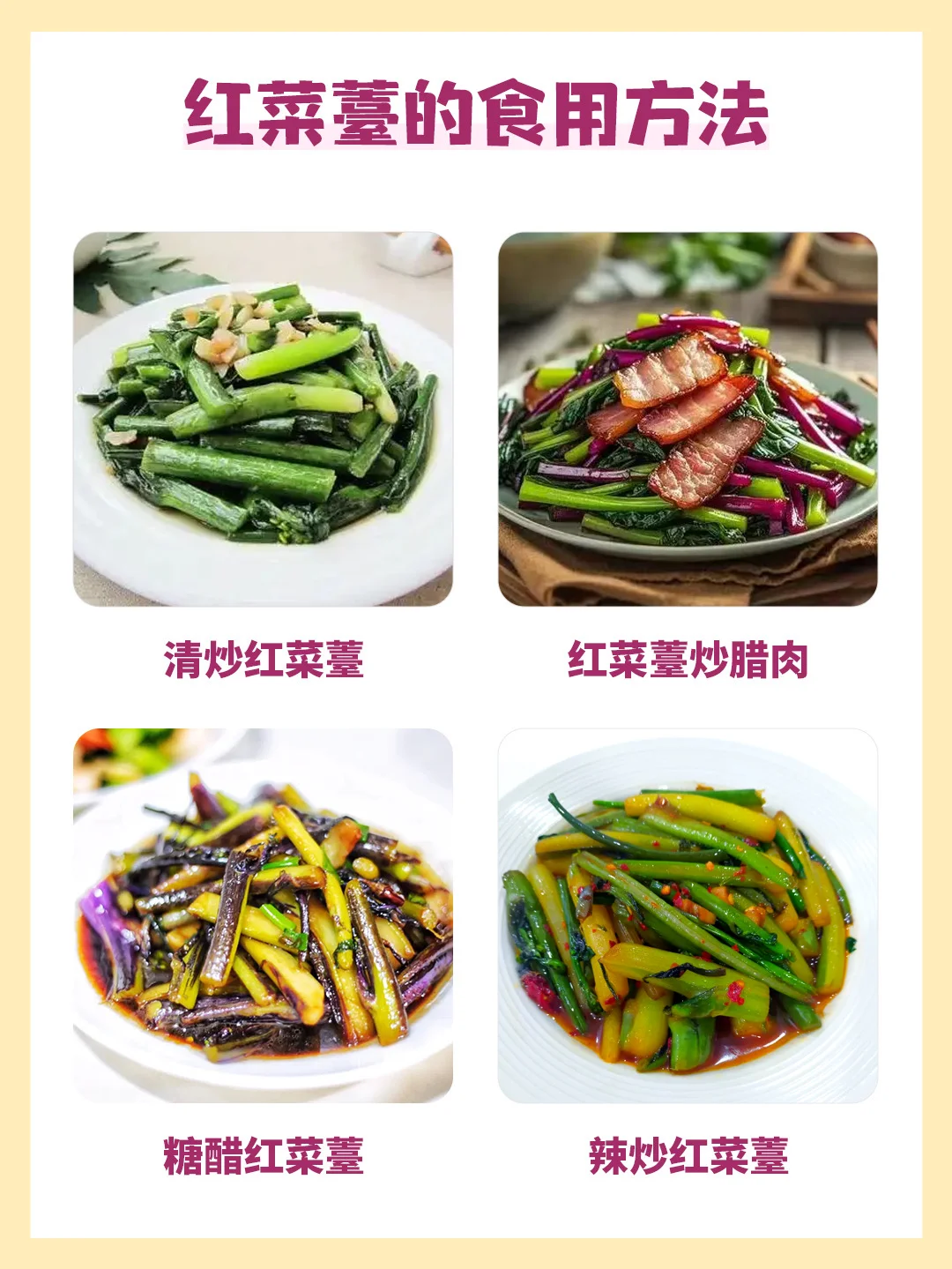 5⃣️红菜薹中的维生素A和类胡萝卜素对眼睛健康有益,能够保护视网膜,预防夜盲症和干眼症等眼部疾病