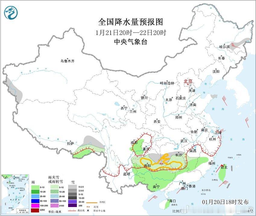【降雪将缩减 冻雨仍持续】昨晚到今天,黄河以南到南岭以北多地出现雨雪冰冻天气,湖南降水相态复杂,雨、雨夹雪、冰粒、冻雨、降雪皆有。河南湖北安徽等地降雪强度大,今晚还有不少积雪(20时积雪不是必须上报,因此部分站点没数据,不代表没积雪,08时积雪是必须上报)。今晚到明天冷空气继续南下,降雪向南推进,范围缩小。而冻雨依然不少。从图4看,在贵州、湖南、广西等地依然存在逆温,也就是925百帕(大约800米高度),低空冷空气的东北风,气温低于0℃。而800百帕(大约2000米高度),有西南暖湿气流,气温大雨0℃,这样的形势容易导致冻雨。也是高空的雪花下落过程中,在大于0℃的暖层里融化为水滴,之后继续下落到近地面时,又进入冷空气小于0℃的冷区。此时形成过冷水滴,也就是温度低于0℃,但保持液态水状态,来不及冻结就落到地面低温的物体上,比如道路、草木,就会快速结冰,这就是冻雨。中央气象台今晚继续发布冰冻黄色预警:预计1月20日20时-21日20时,贵州中东部和西北部、湖南中南部、广西北部、广东西北部、云南东北部、江西中部、福建西北部等地的部分地区有冻雨或冰粒,上述大部地区冻雨量1-2毫米,其中湖南西南部、贵州东南部、广西北部部分地区3-5毫米、局地可达6毫米以上。21日晚-22日晨,南方的降水依然可能出现冻雨,重点区域还是在贵州中南部、湖南西南部和广西东北部。22日白天,暖湿气流败退,低空逆温结构消失,且干冷空气控场,水汽条件也转差,本轮冻雨过程也就结束了。23日因为阿富汗和巴基斯坦一带有深槽和冷涡发展东移,新疆西南部和西藏西部可能出现强降雪。