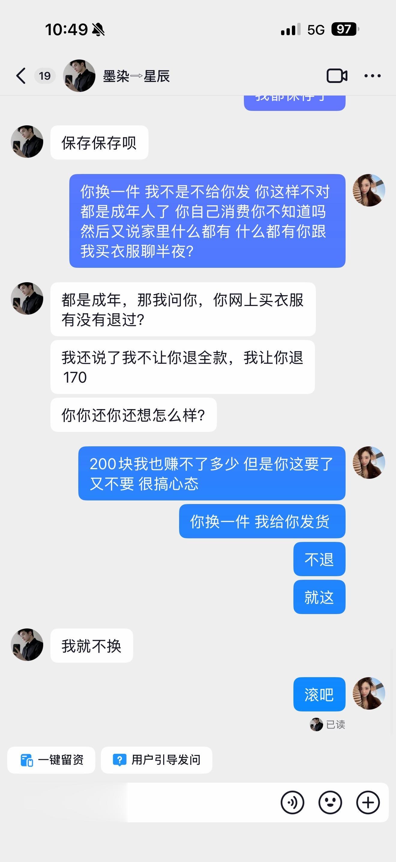家人们这种情况 我直接拉黑了 因为有人说过 以后都会买我衣服然后买一件...