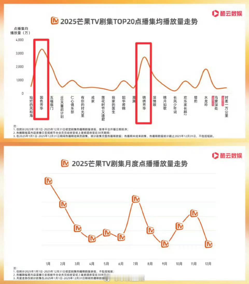 2025芒果tv剧集点播集均播放量走势,杨紫李现国色芳华,锦绣芳华断层领先 国色芳华重映收视第一
