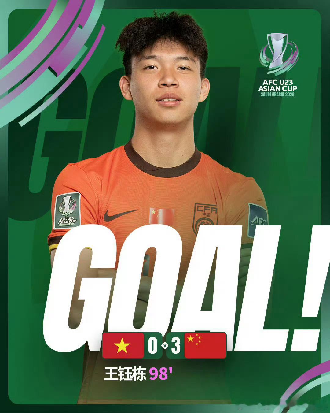 【U23国足首次进入亚洲杯决赛】U23国足首进亚洲杯决赛在北京时间21日凌晨结束的2026年亚足联U23男足亚洲杯半决赛中,全场占据主动的中国队3:0完胜越南队,再次创造球队自参赛以来的最佳战绩。彭啸、向余望分别在比赛第47分钟和第51分钟取得进球。终场结束前,王钰栋将比分锁定在3:0。接下来,中国队将与日本队争夺本届赛事冠军。U23国足决赛对阵日本