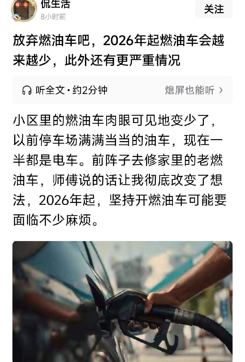 小区里的燃油车肉眼可见地变少了,以前停车场满满当当的油车,现在一半都是电车。前阵子去修家里的老燃油车,师傅说的话让我彻底改变了想法,2026年起,坚持开燃油车可能要面临不少麻烦。就算一些人不怕电车的里程焦虑、充电麻烦、辐射之害、维修昂贵、安全隐患大、使用周期短、折旧成本高、换电池不如换车、电价随时涨跌,充电站一天几个价)这些弊端,其因生产制造电池的主要原材料正面临枯竭且依赖进口,也坚持不了多久。 愚弄他人有意思吗?民众有自己的判断,不需要“大明白”带节奏。勿以恶小而为之!搞这种炒作和宣传有意义吗? 自生自灭,自然选择,自我淘汰多好。没必要天天炒作,还真说不准谁淘汰谁呢?假如一辆燃油车都没有了,以后电车费用会越来越高。养路费你绝对跑不了,保险还会涨,车船使用税早晚也得交,电费现在高价充电桩很多了。以后养电车费用不会比油车轻松。燃油车市场份额 买燃油车 燃油车销量排行 淘汰燃油汽车 油车淘汰论 燃油车革新 传统燃油车危机