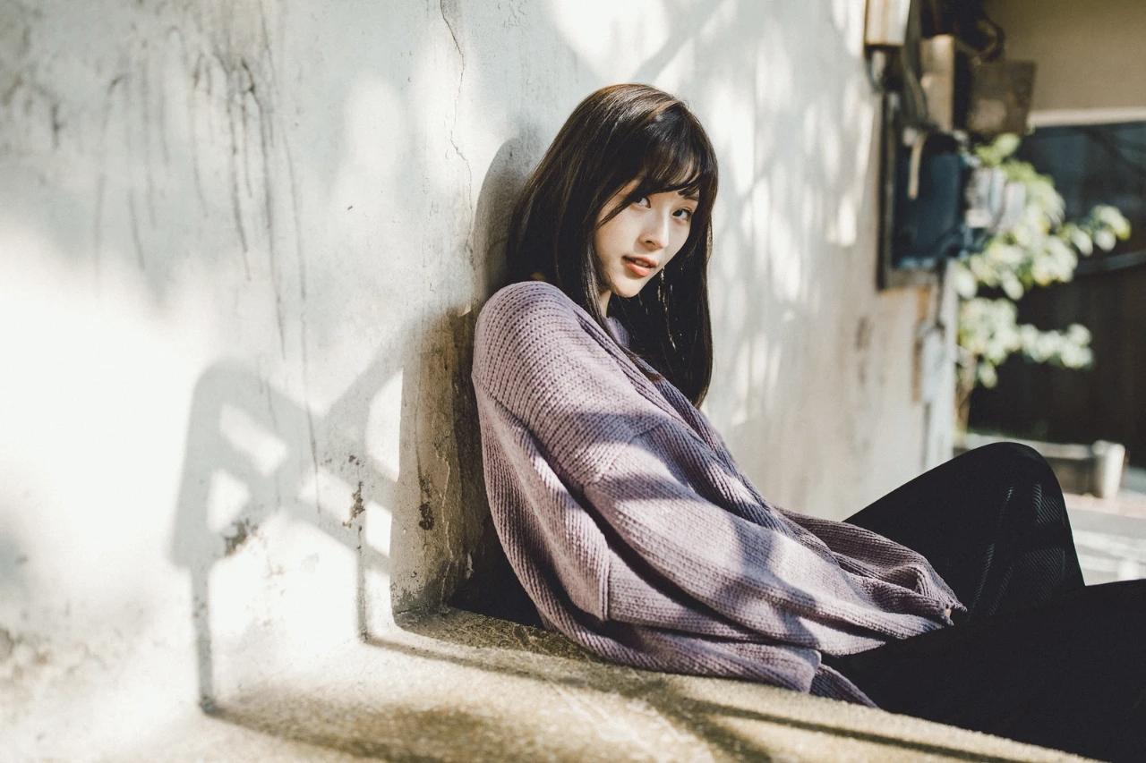 秋日室外写真系列/少女的笑容 阳光洒在墙角的少女,温暖而宁静。秋日少女照 阳光少