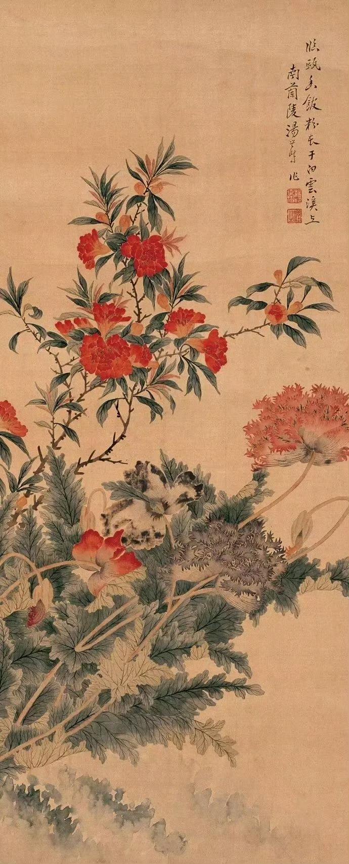 🌹诗词|时时是好时,日日是好日。——【宋】释师观《偈颂七十六首》 🌹赏画|清·汤世澍 花鸟画 汤世澍工花卉,鲜丽无比,书工米芾,题识精美。绘画 古诗词