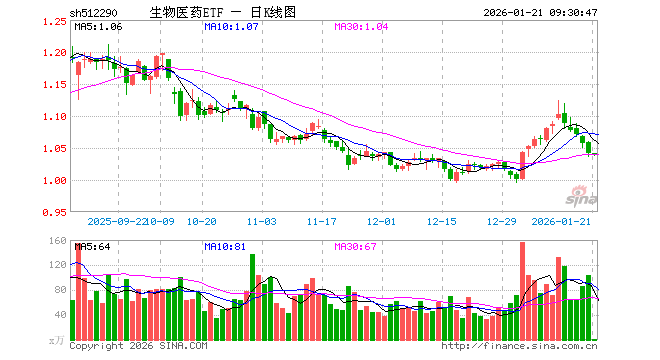 生物医药ETF(512290)开盘涨0.10%,重仓股药明康德跌0.46%,恒瑞医药涨0.02%