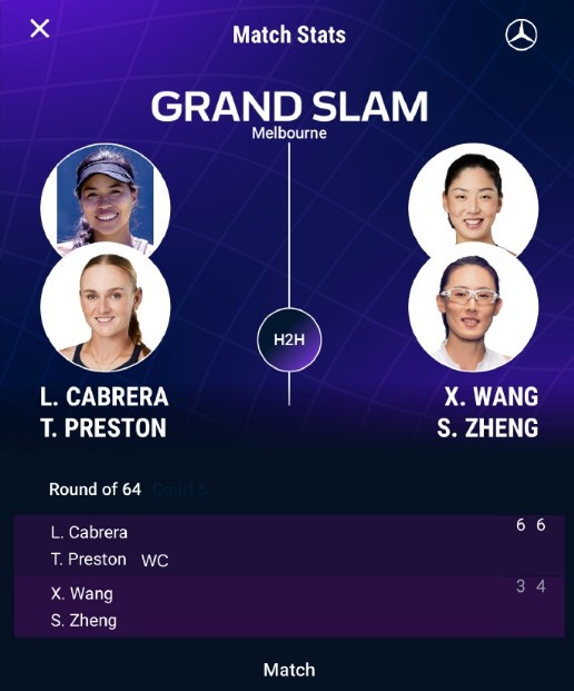 卡布雷拉/普雷斯顿下轮将对阵施耐德/萨姆索诺娃和兹沃纳列娃/柴原瑛菜之间的胜者。
